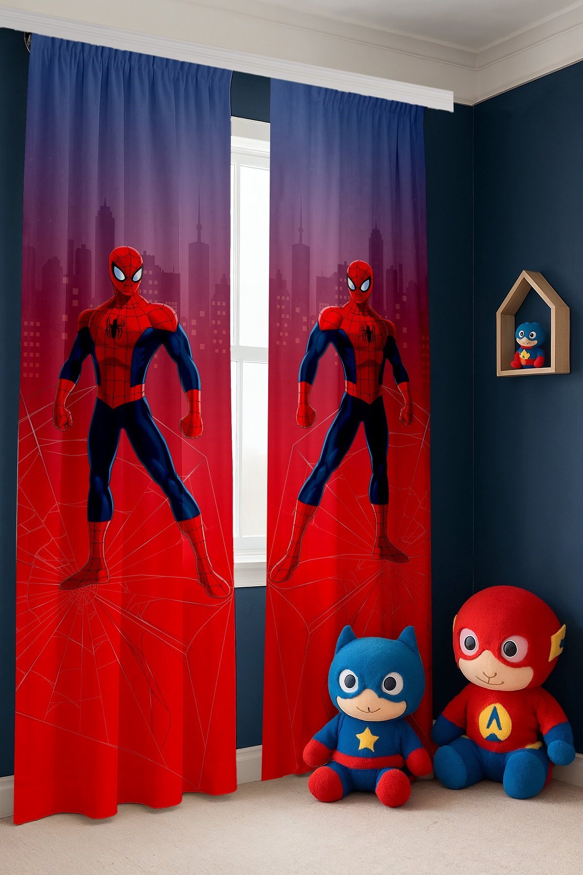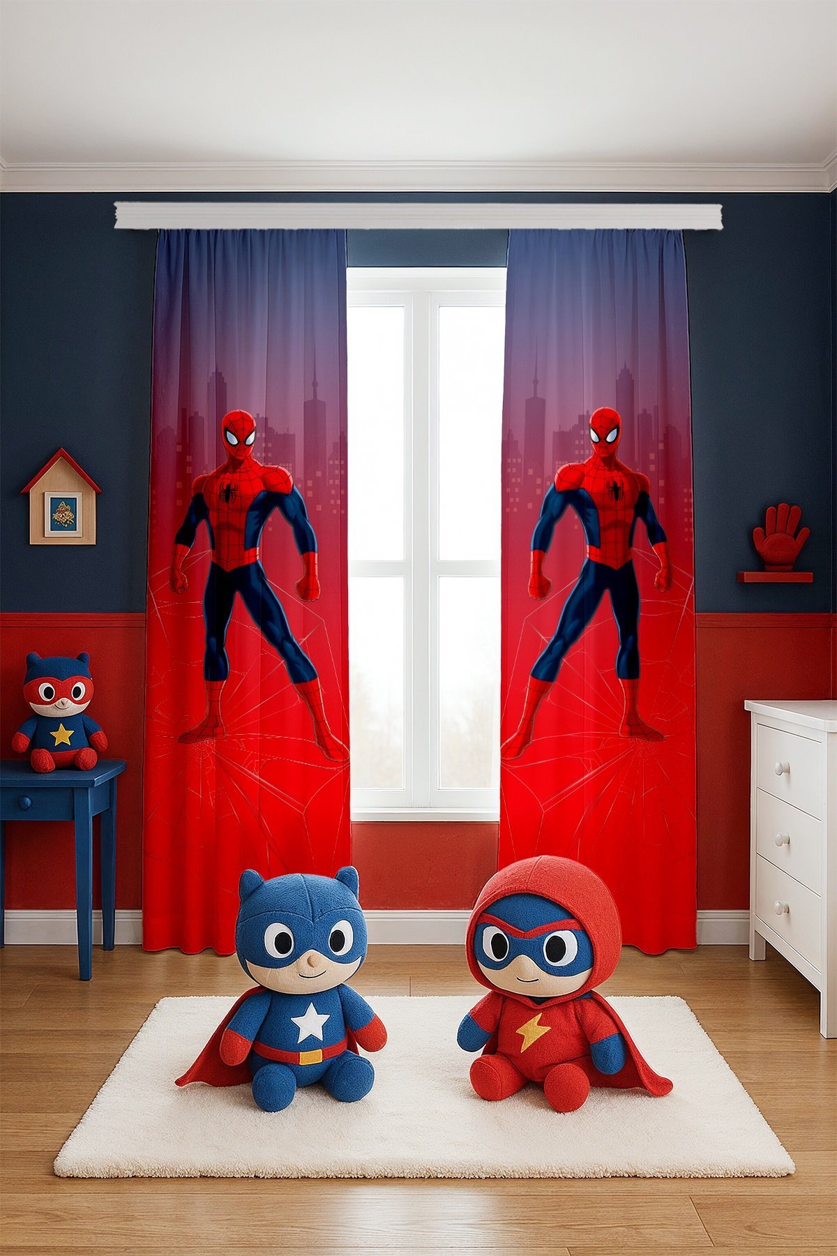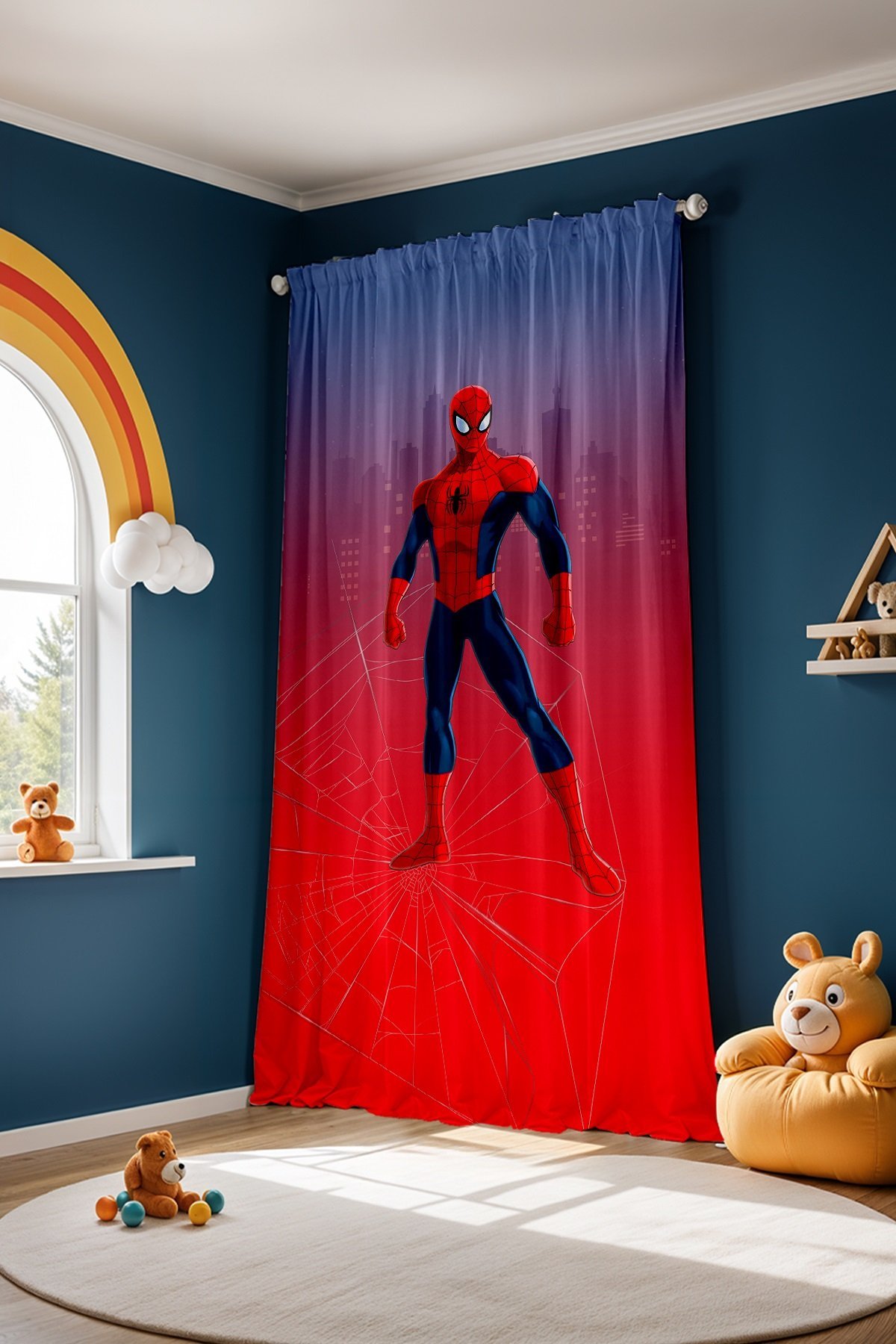 Kırmızı Örümcek Adam Desenli Çocuk Bebek Odası Fon Perde (Tek Kanat Fiyatlandırma)