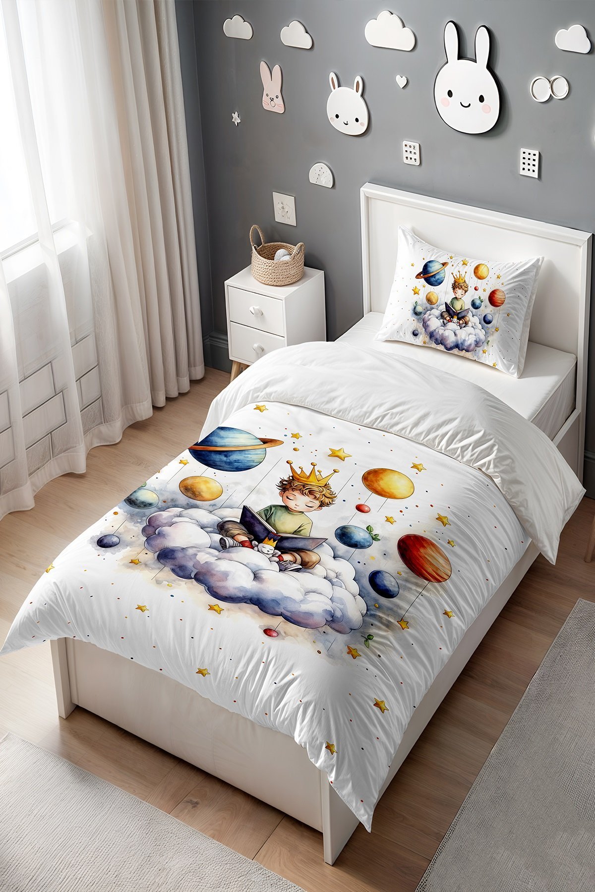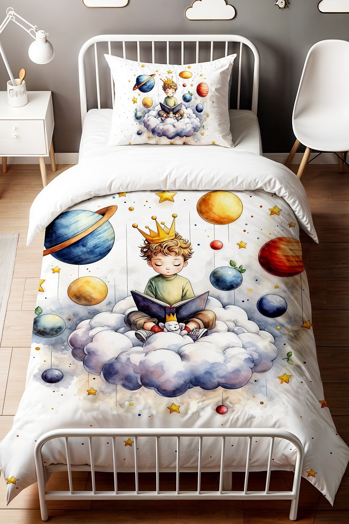 Kitap Okuyan Kahraman Desenli Tek Kişilik Bebek Çocuk Nevresim Seti