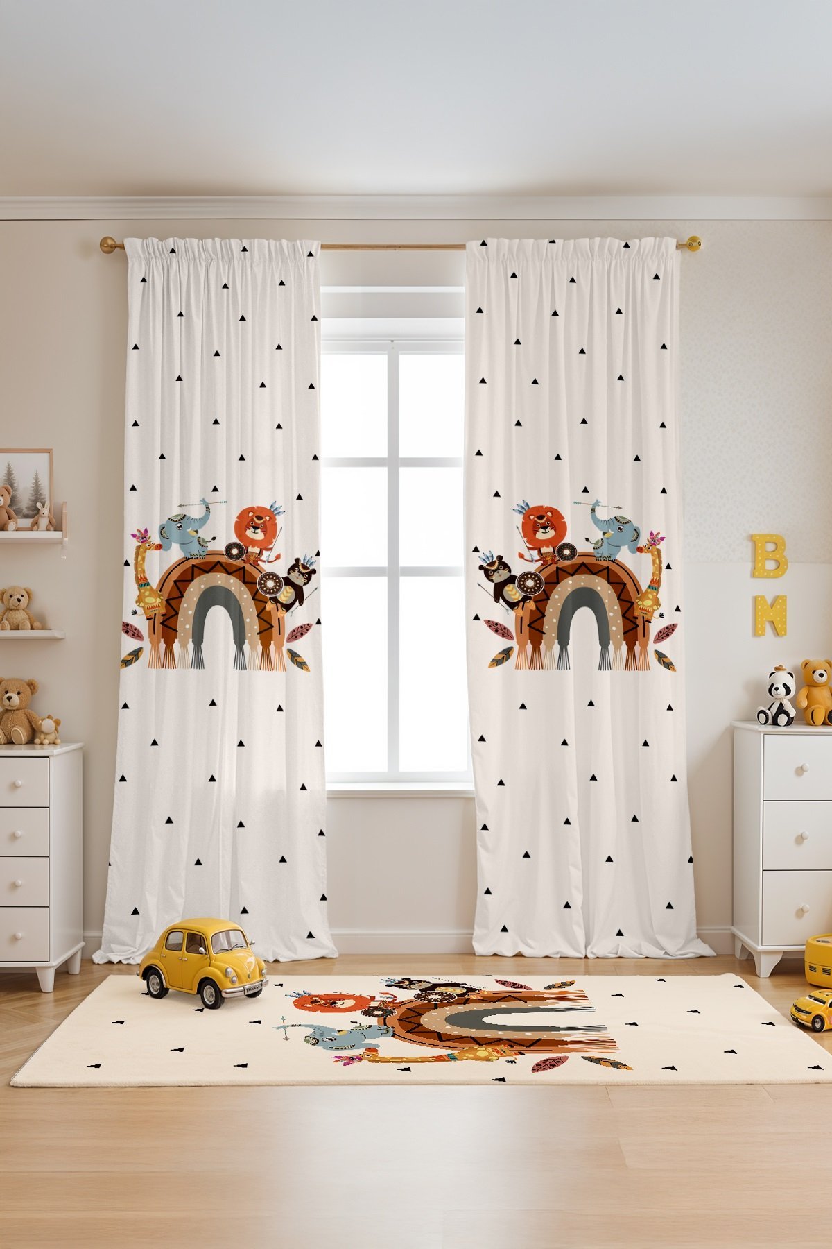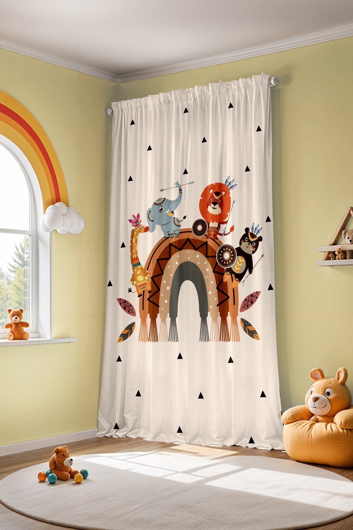 Kızılderili Safari ve Gökkuşağı Desenli Çocuk Bebek Odası Fon Perde (Tek Kanat Fiyatlandırma)