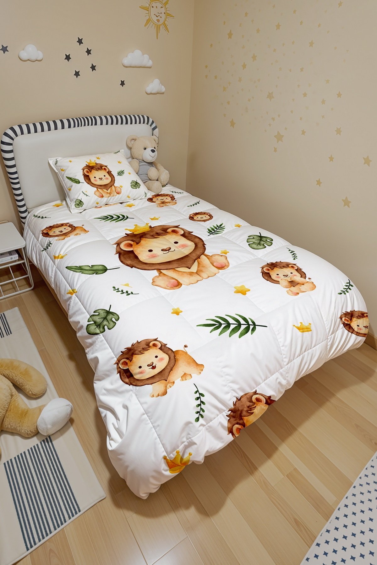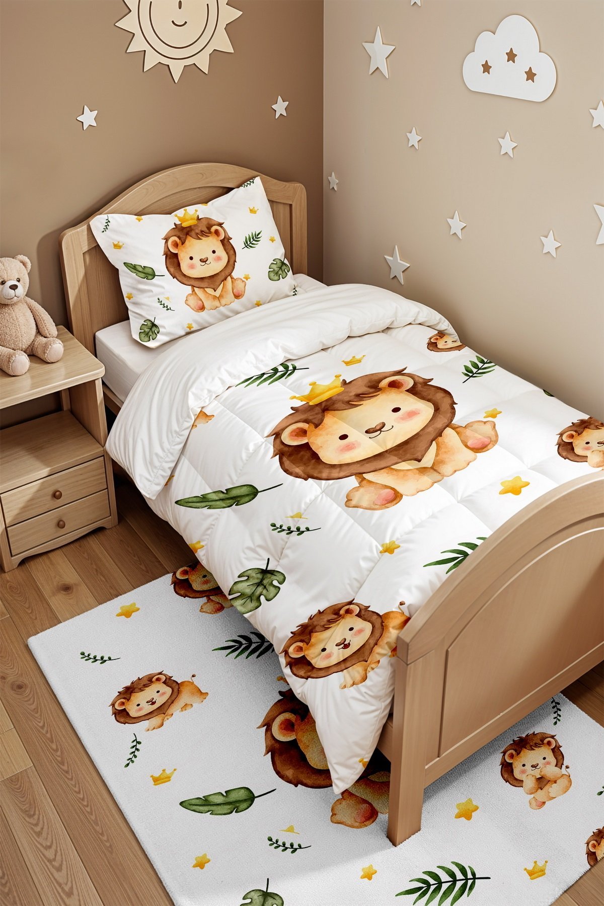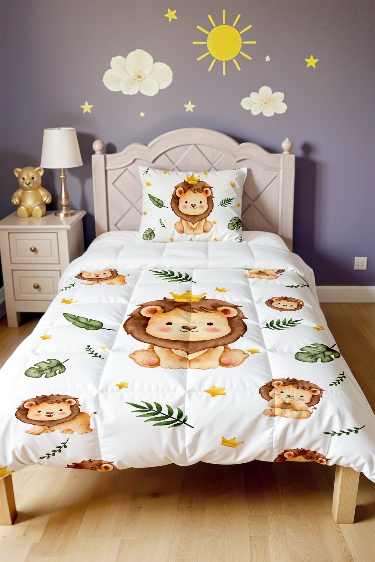 Kral Aslanlar Desenli Tek Kişilik Yorgan ve Yastık Kılıfı
