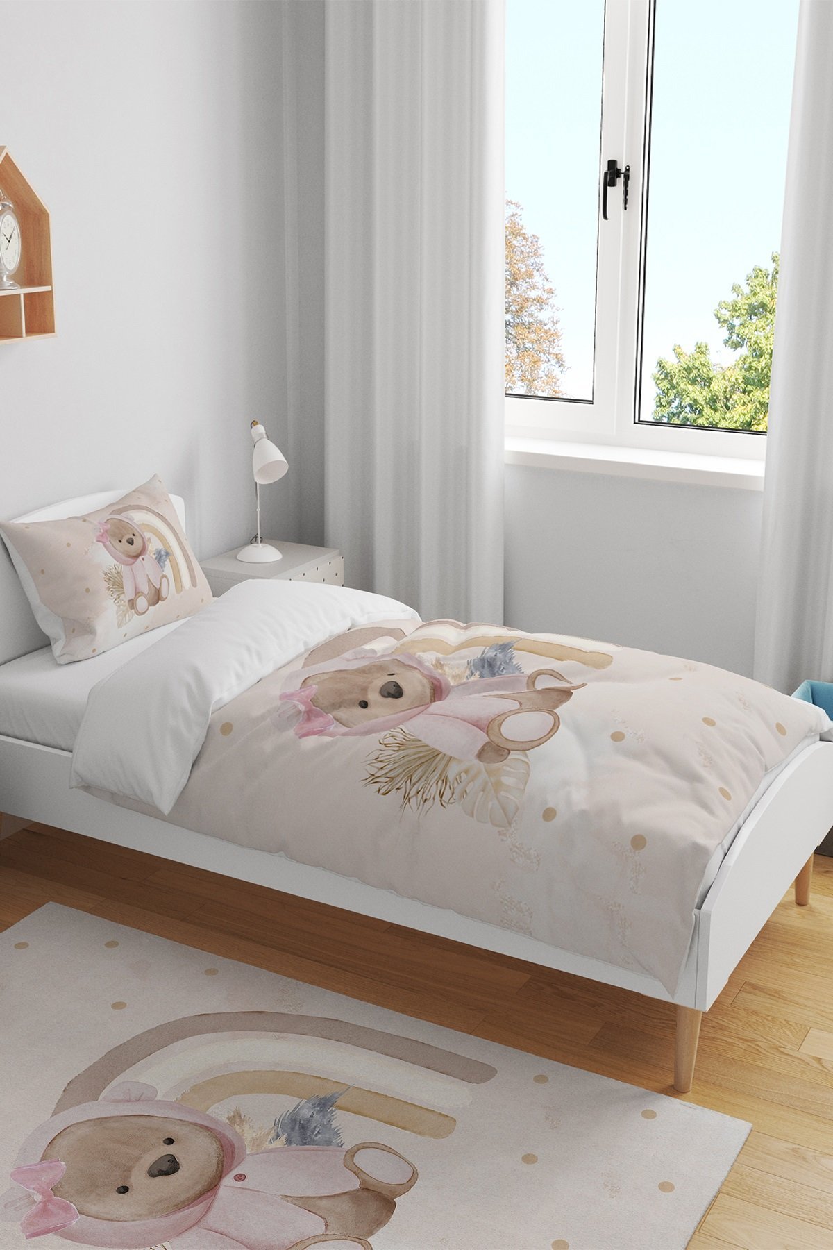Krem Ayıcık Desenli Tek Kişilik Bebek Çocuk Nevresim Seti