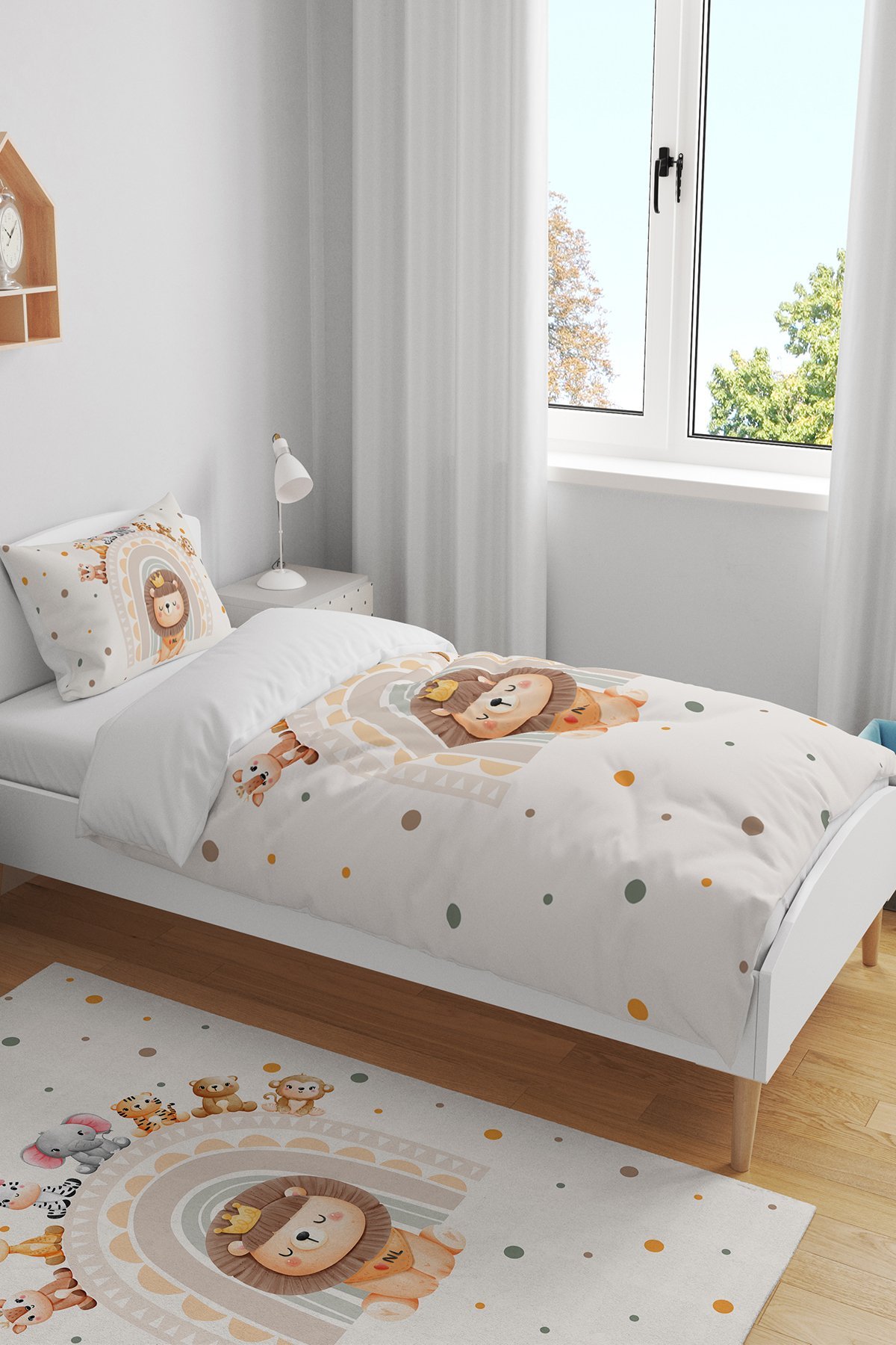 Krem Gökkuşaklı Safari Desenli Tek Kişilik Bebek Çocuk Nevresim Seti