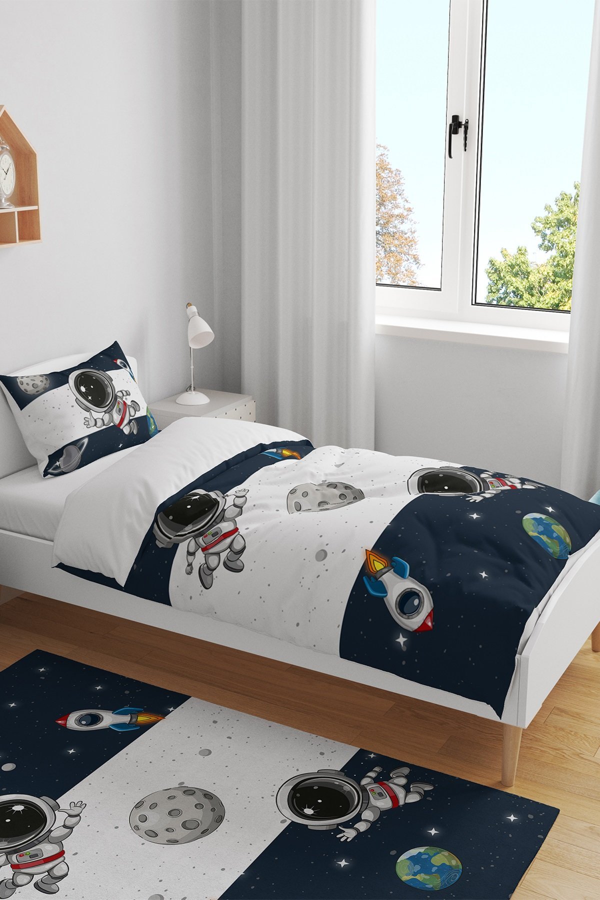 Lacivert Uzay ve Minik Desenli Tek Kişilik Bebek Çocuk Nevresim Seti
