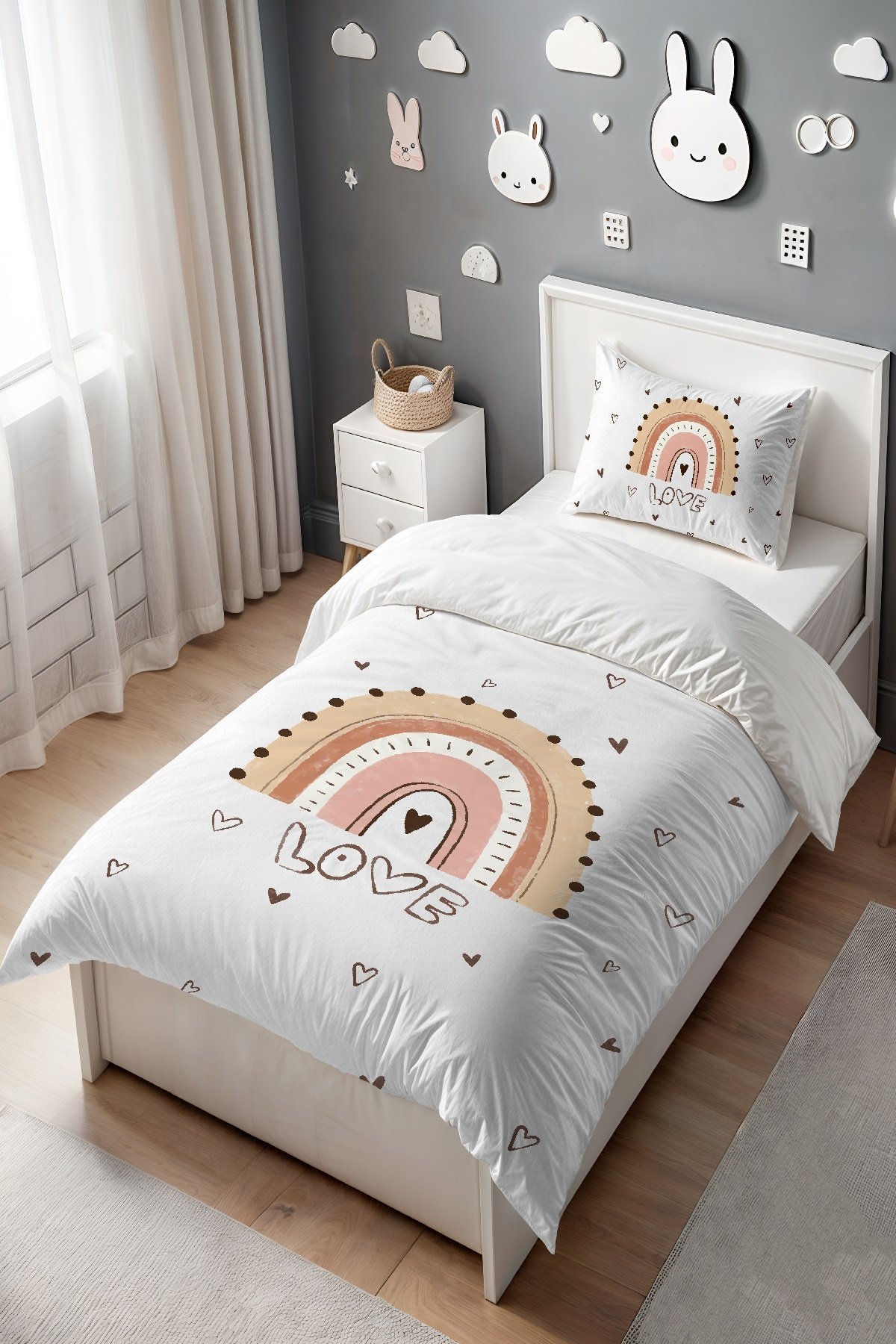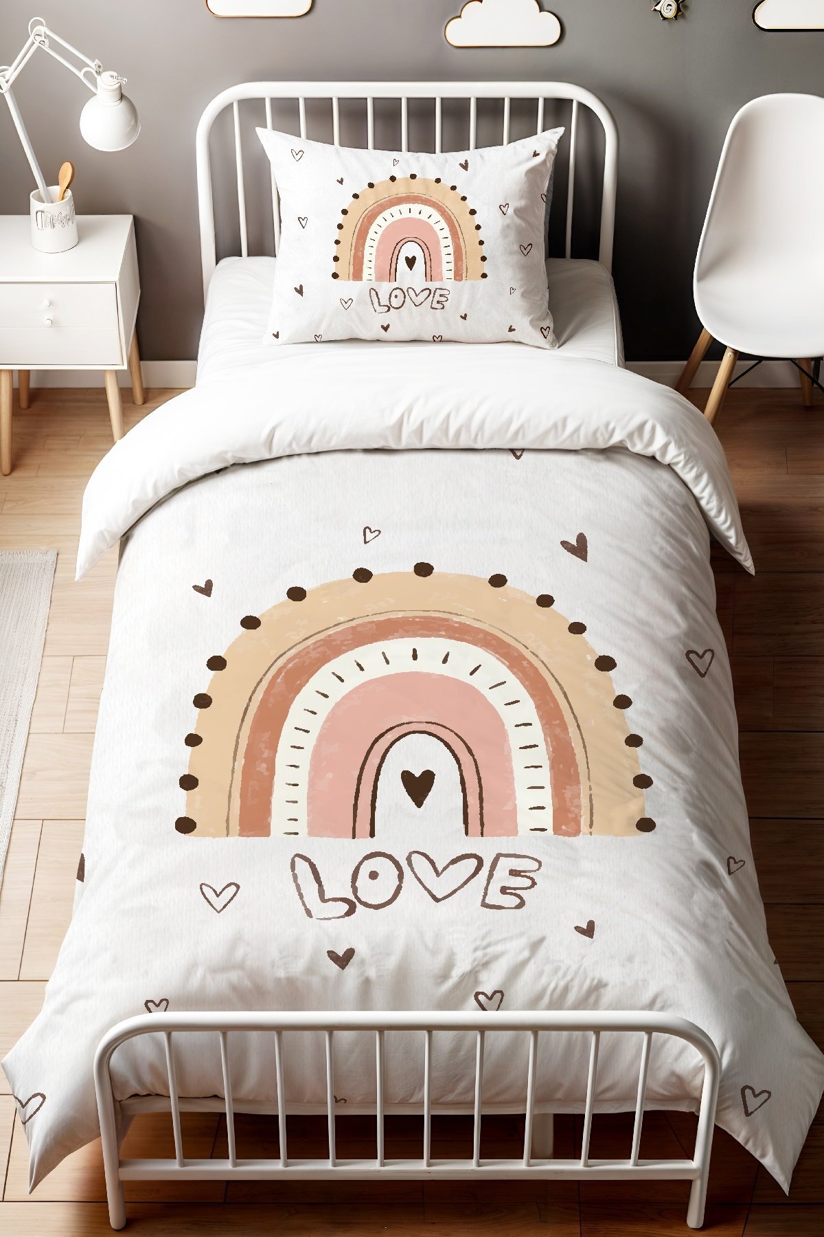 Love Gökkuşağı Desenli Tek Kişilik Bebek Çocuk Nevresim Seti