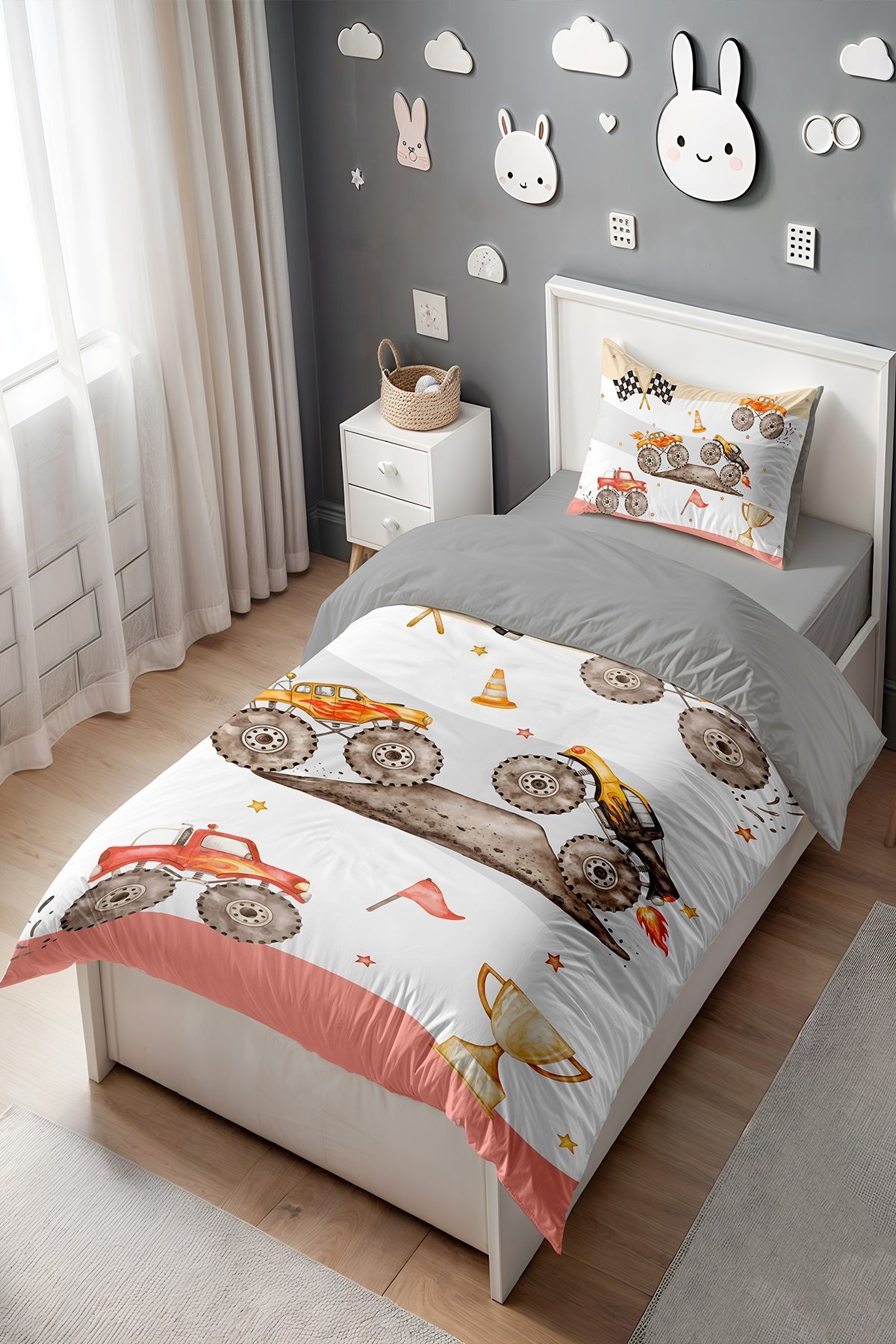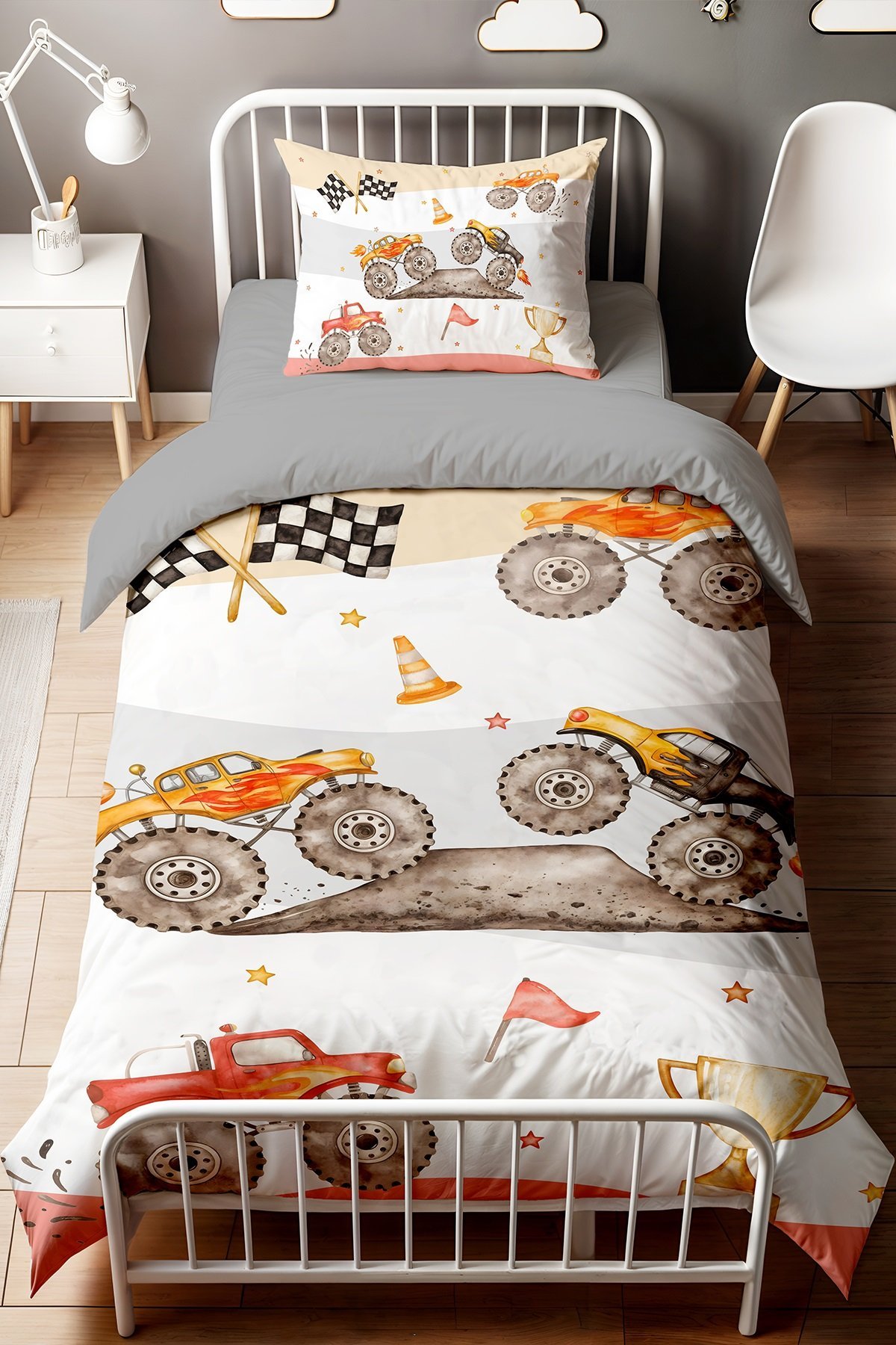 Maceracı Truck Desenli Tek Kişilik Bebek Çocuk Nevresim Seti