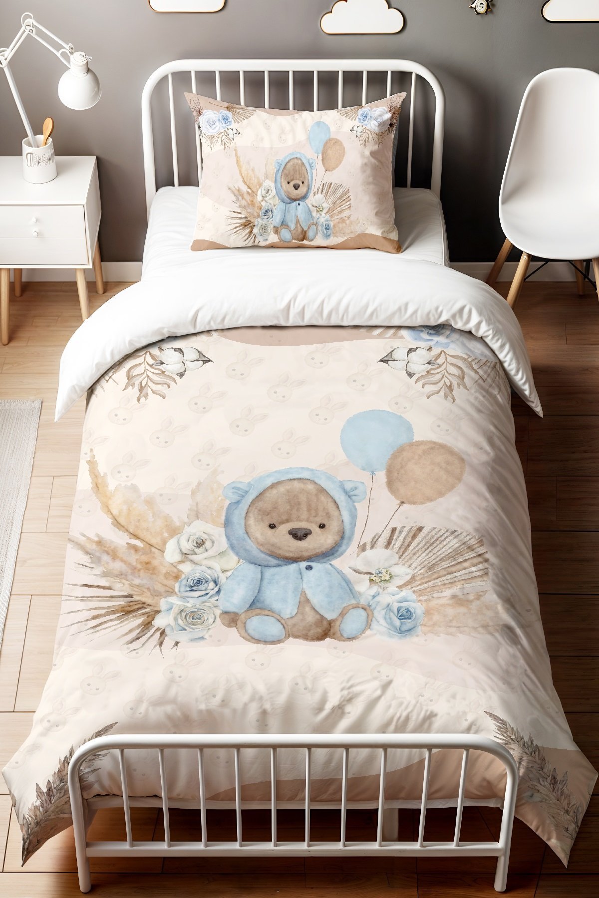Mavi Ayıcık Desenli Tek Kişilik Bebek Çocuk Nevresim Seti