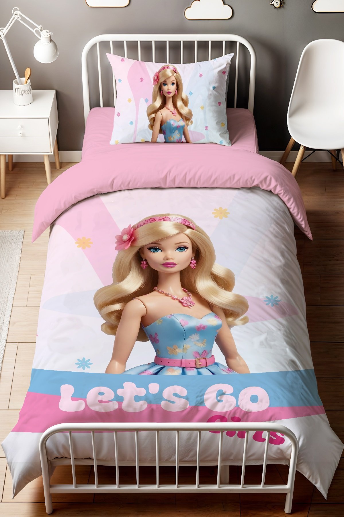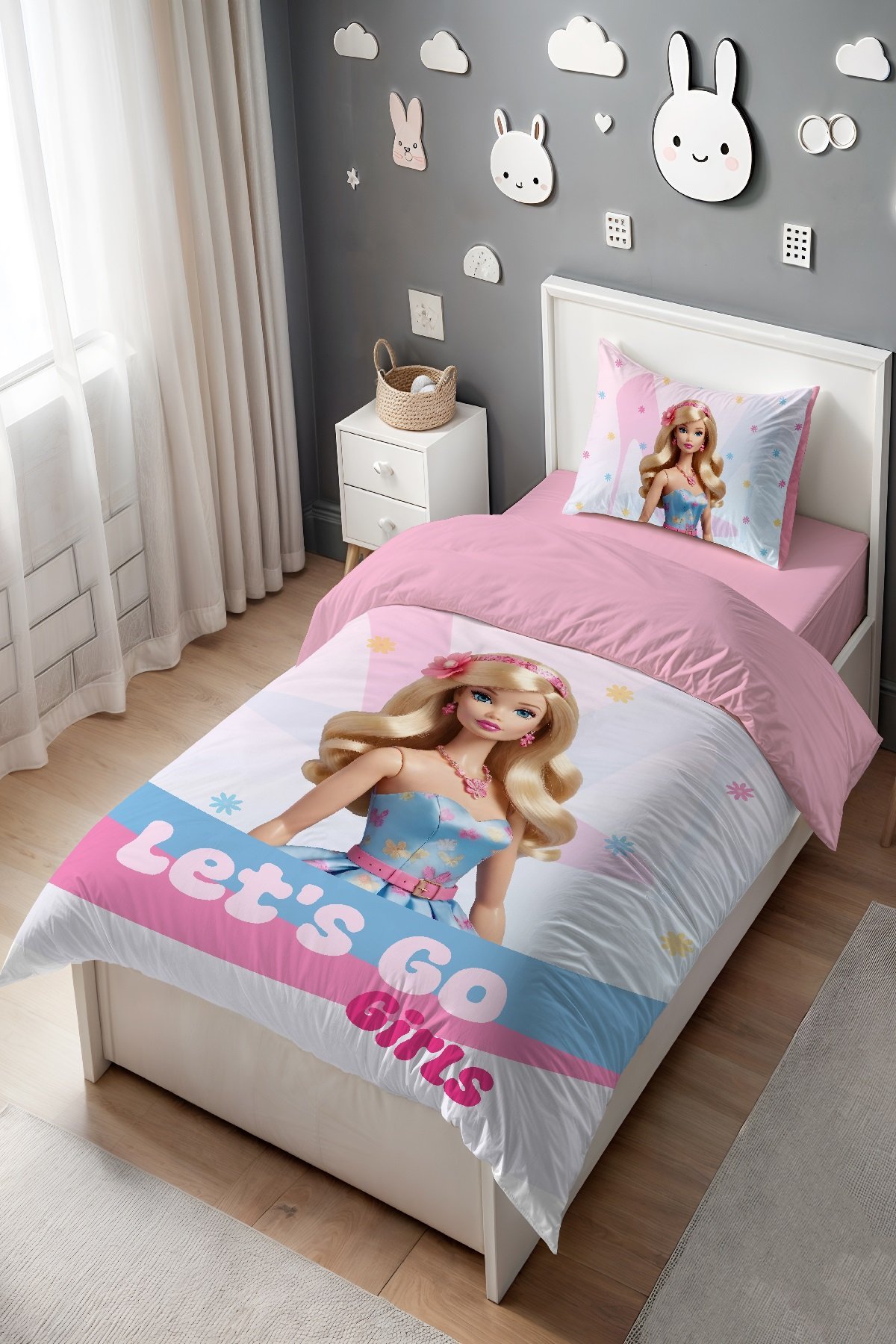 Mavi Elbiseli Barbi Desenli Tek Kişilik Bebek Çocuk Nevresim Seti
