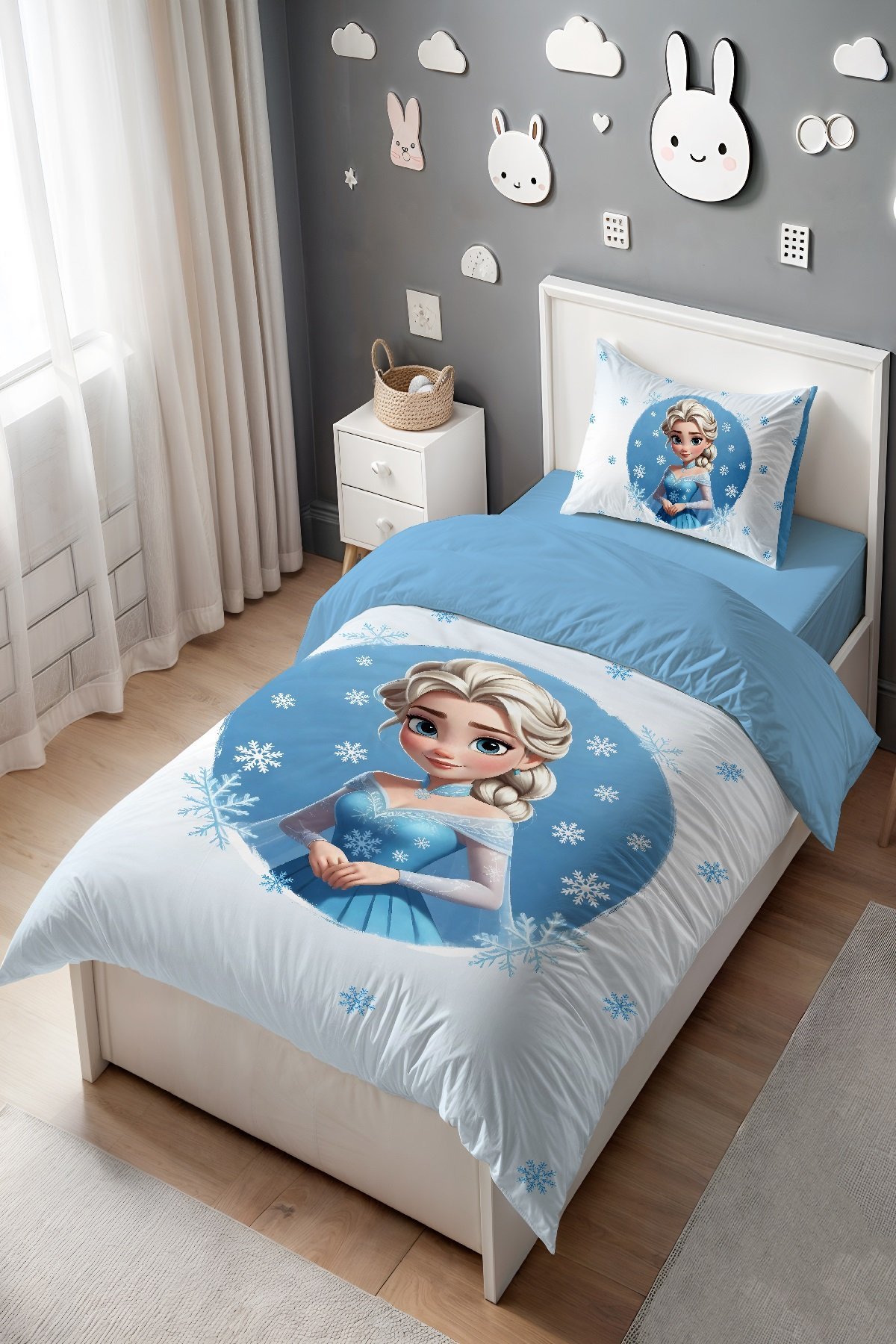 Mavi Küçük Elsa Desenli Tek Kişilik Bebek Çocuk Nevresim Seti
