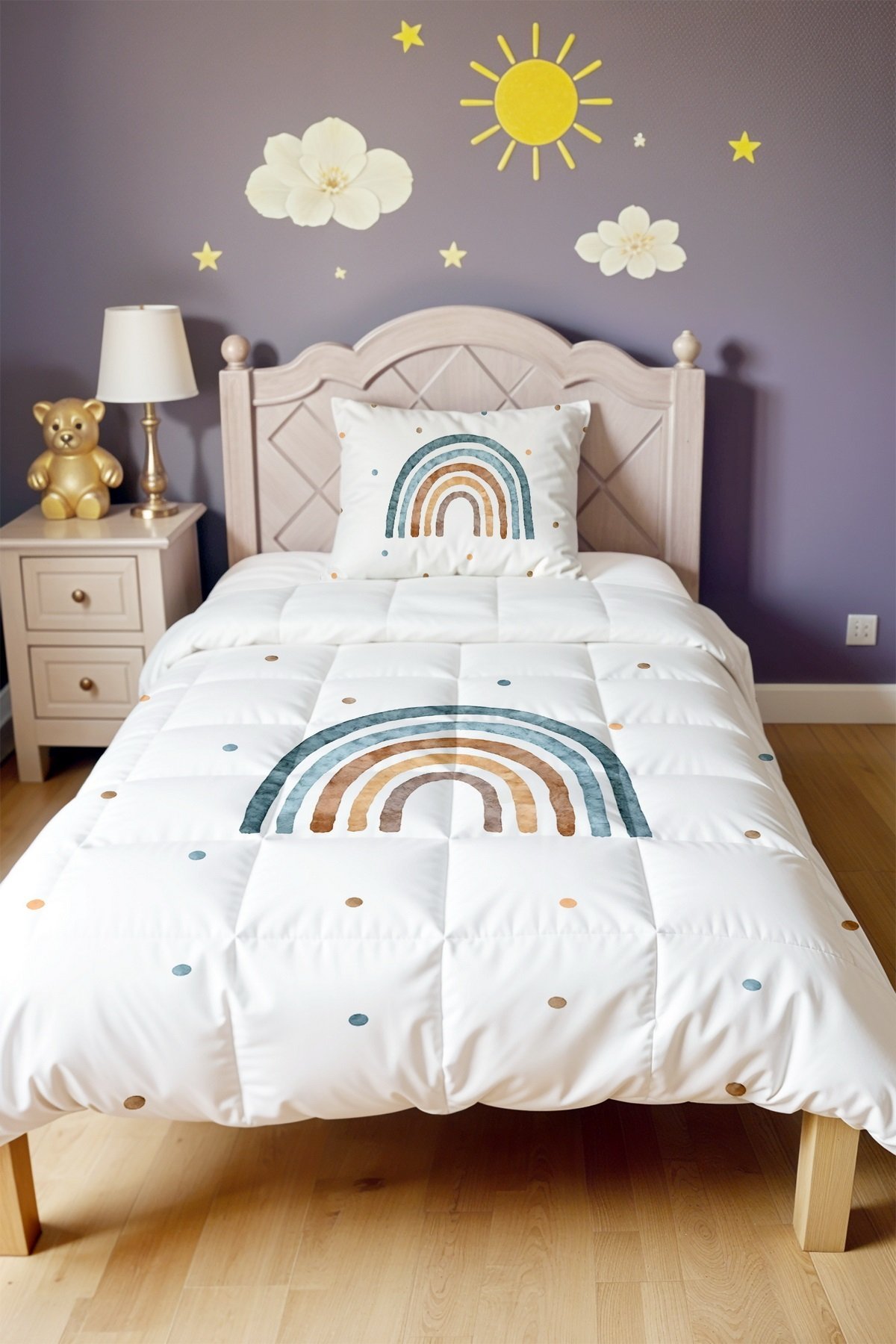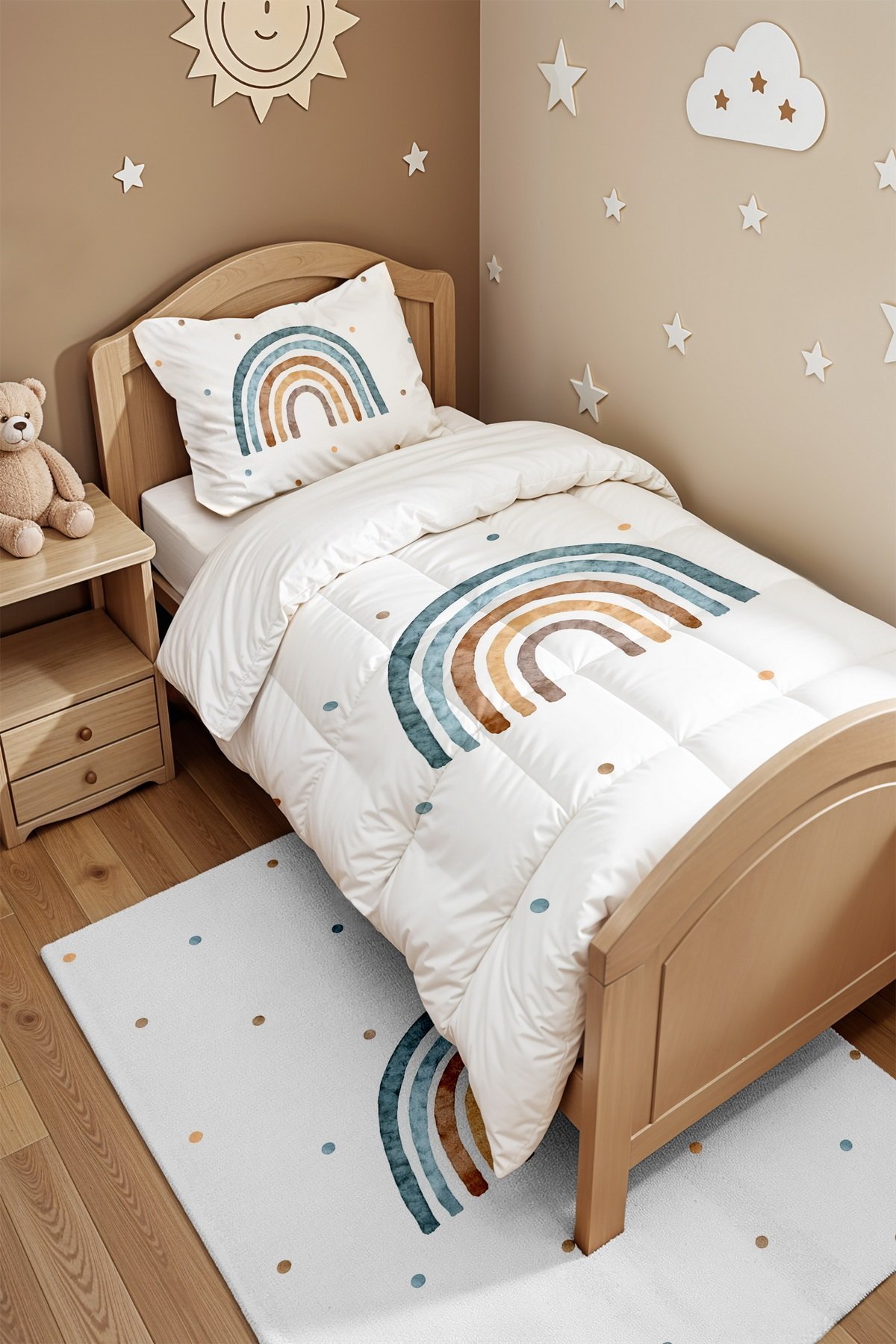 Mavili Gökkuşağı Desenli Tek Kişilik Yorgan ve Yastık Kılıfı