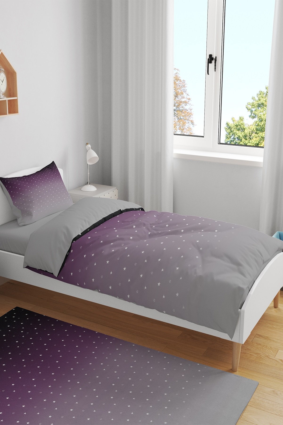 Mor Gri Yıldızlar Desenli Tek Kişilik Bebek Çocuk Nevresim Takımı