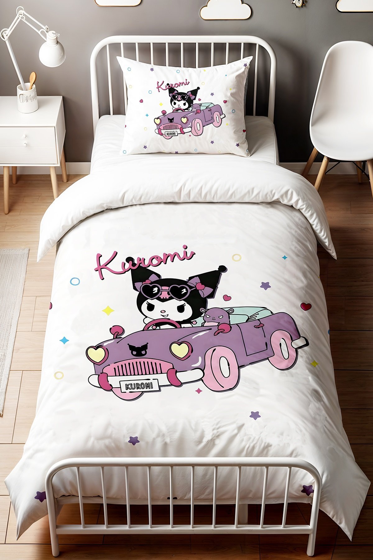 Mor Kuromi Arabası Desenli Tek Kişilik Bebek Çocuk Nevresim Seti