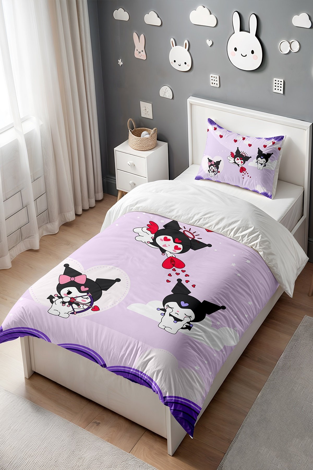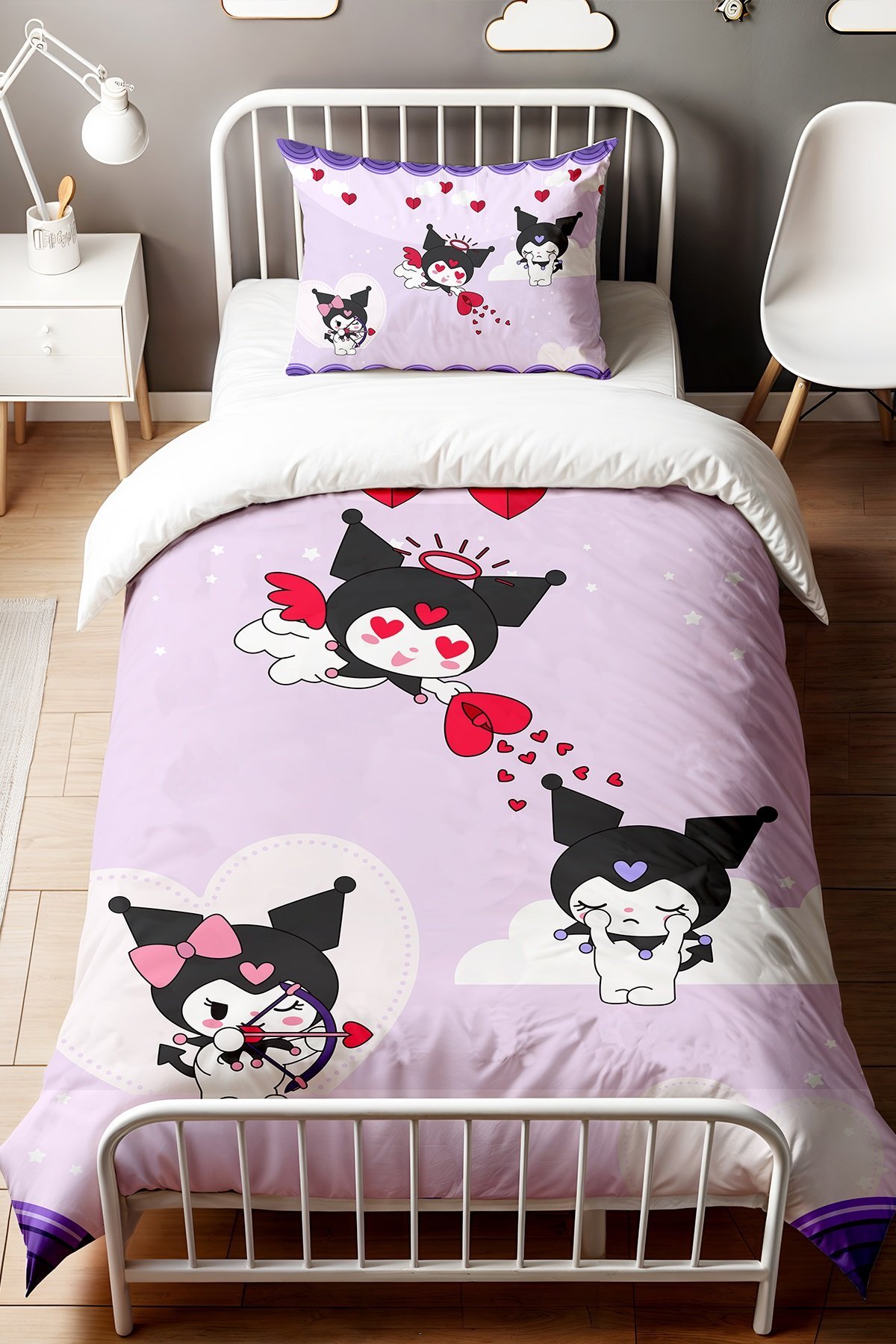 Mor Melek Kuromileri Desenli Tek Kişilik Bebek Çocuk Nevresim Seti