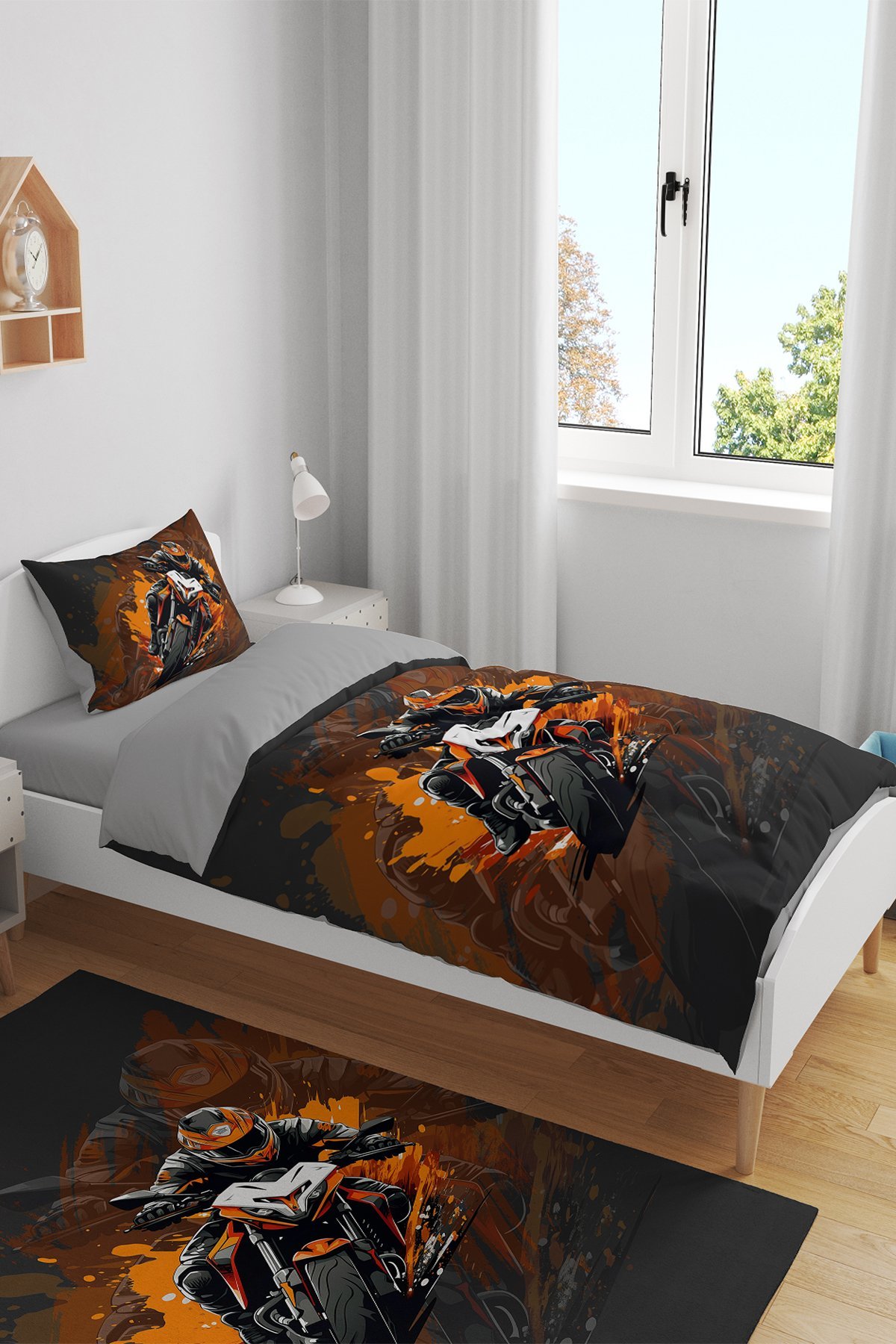 Motor 2 Desenli Tek Kişilik Bebek Çocuk Nevresim Seti