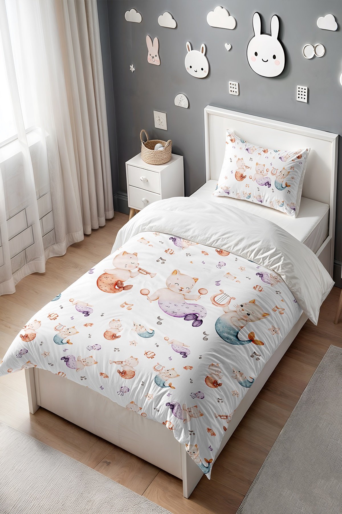 Müzikalci Kediler Desenli Tek Kişilik Bebek Çocuk Nevresim Seti