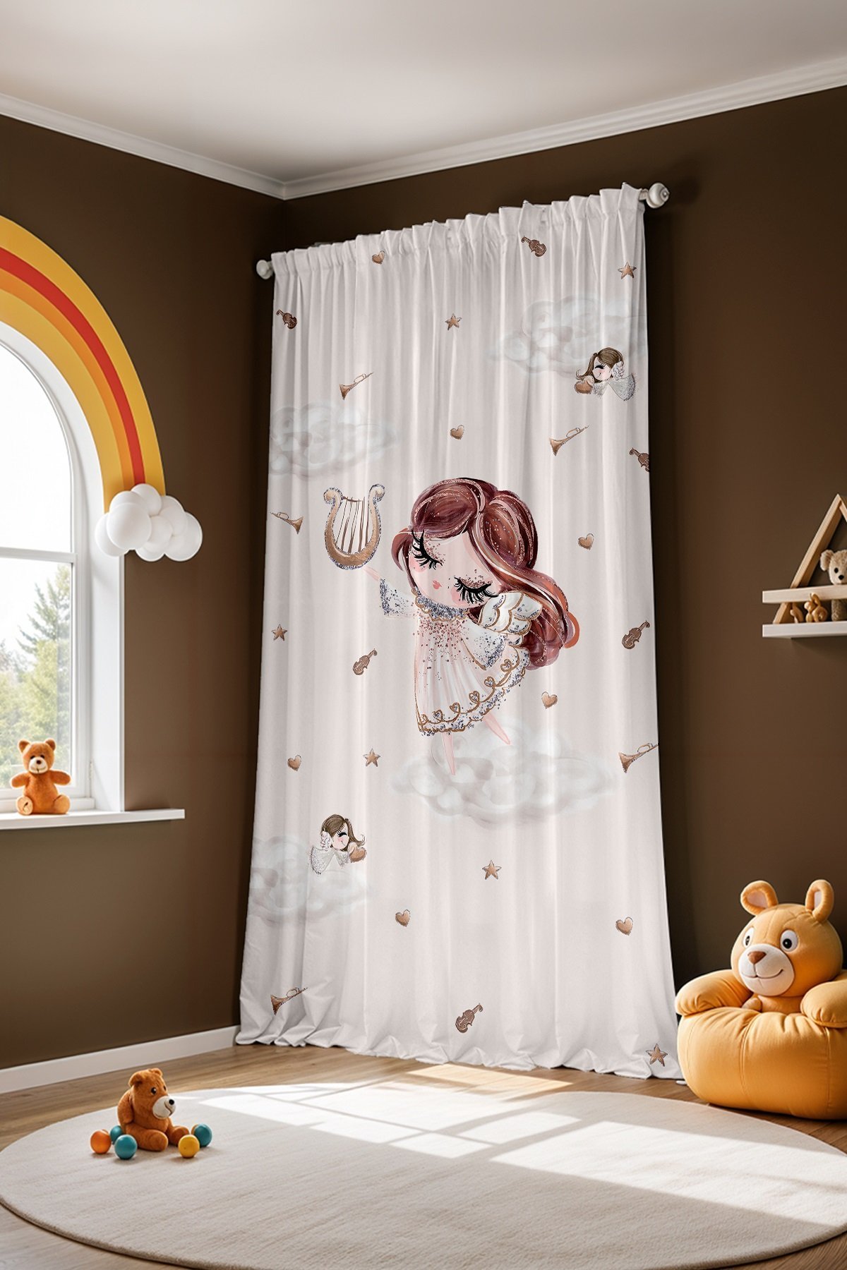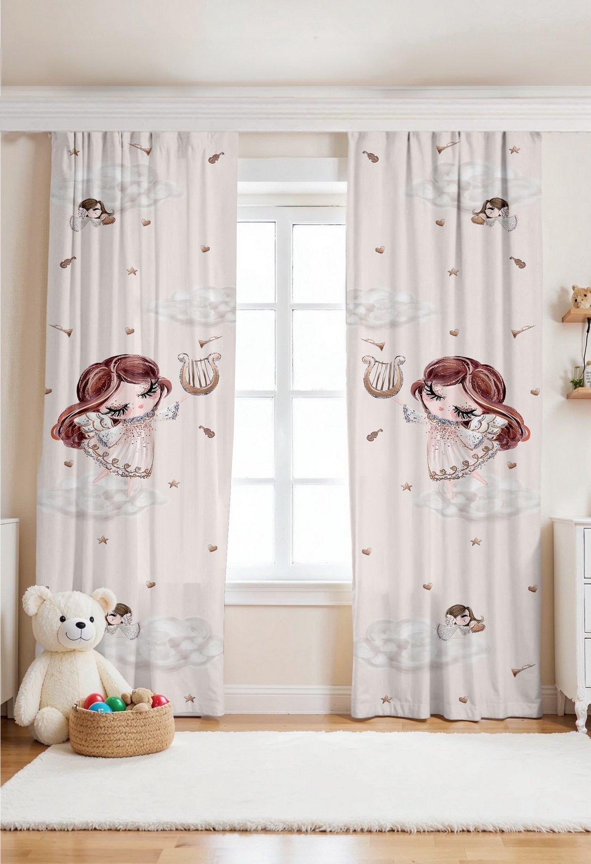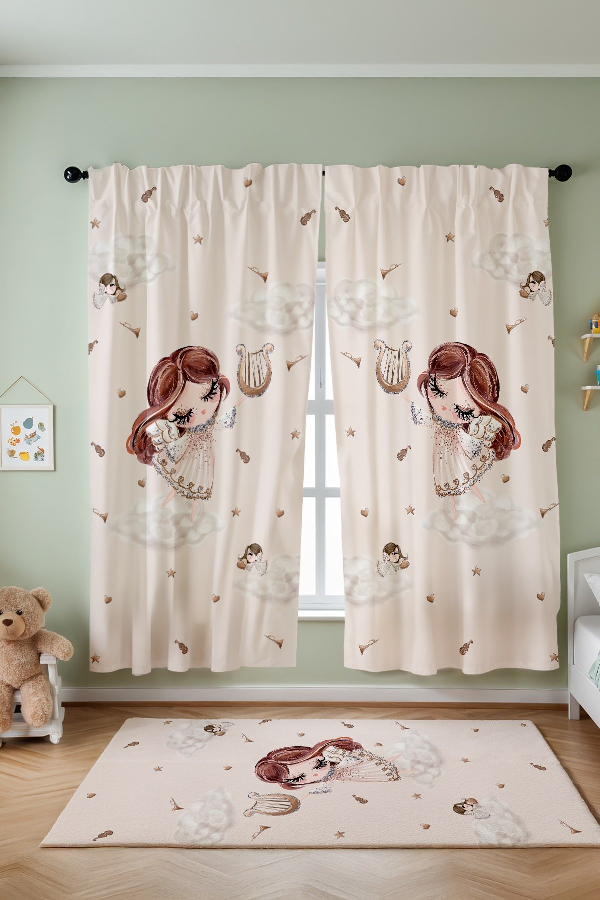 Muzisyen Peri Desenli Çocuk Bebek Odası Fon Perde (Tek Kanat Fiyatlandırma)