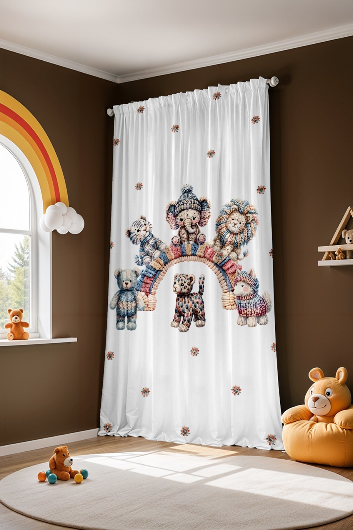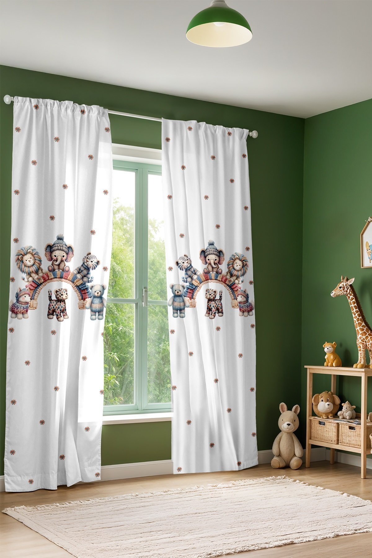 Örgü Gökkuşağı ve Safari Desenli Çocuk Bebek Odası Fon Perde (Tek Kanat Fiyatlandırma)
