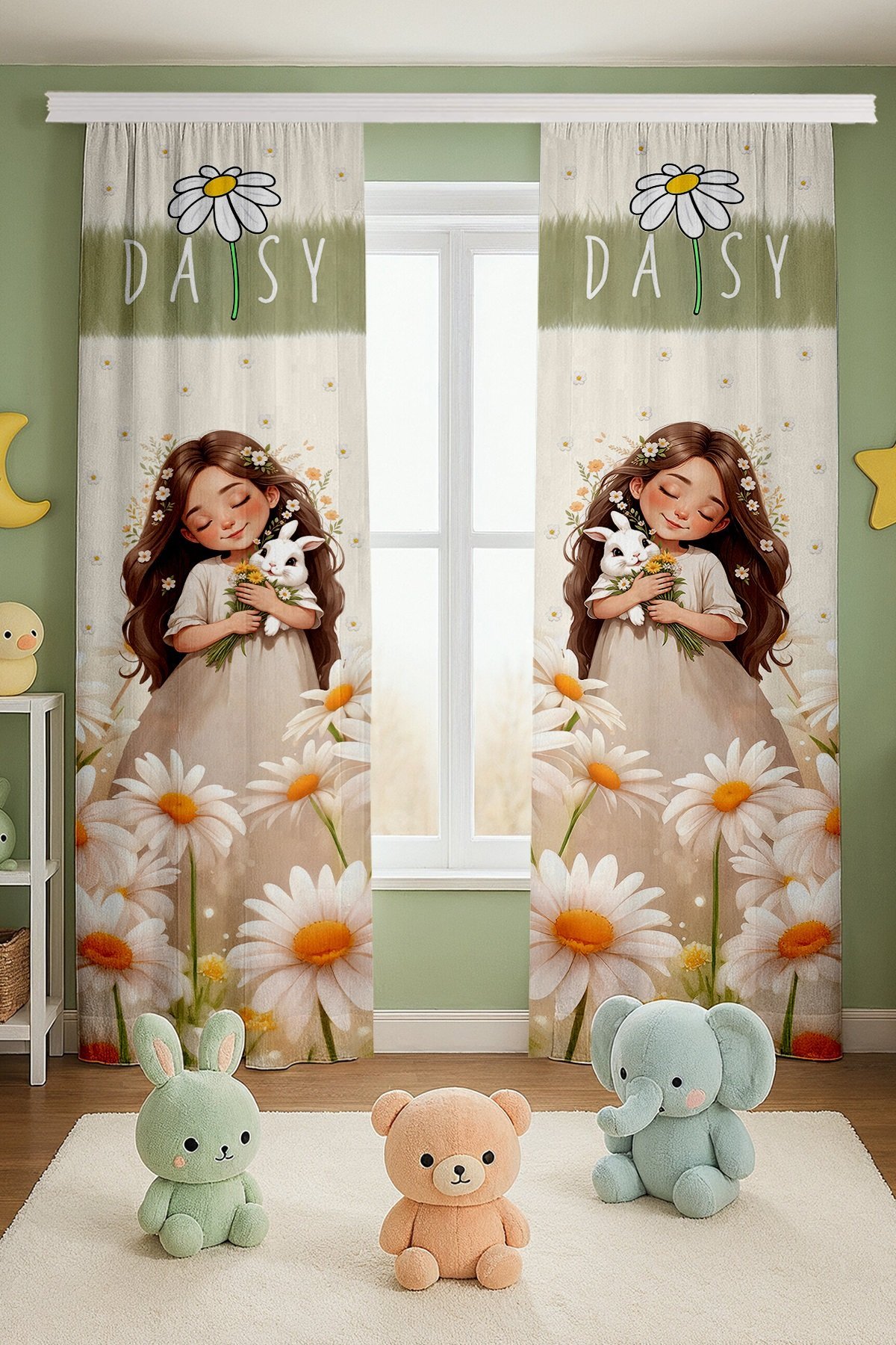 Papatya Taçlı Prenses Desenli Çocuk Bebek Odası Fon Perde (Tek Kanat Fiyatlandırma)