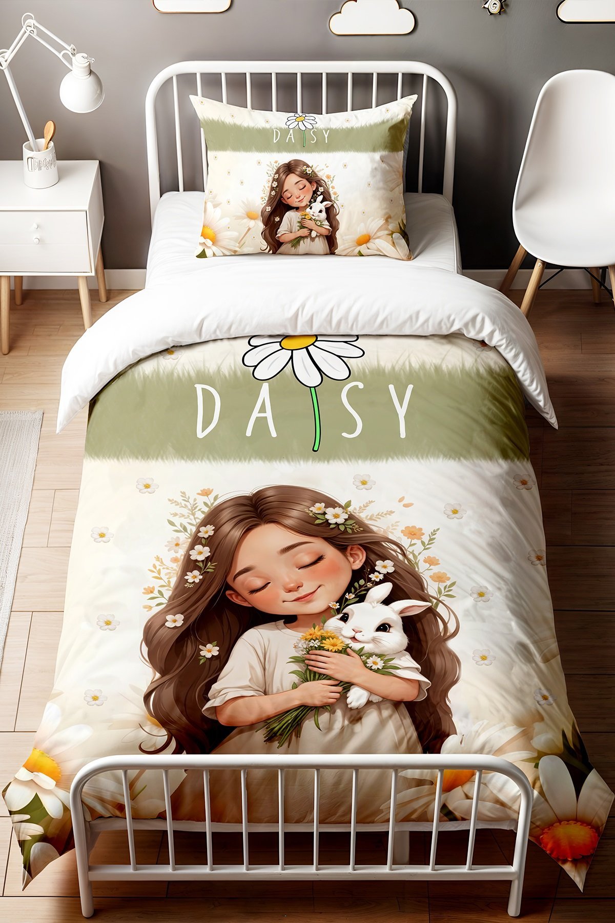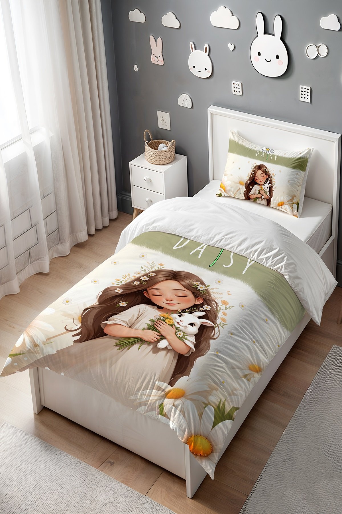 Papatya Taçlı Prenses Desenli Tek Kişilik Bebek Çocuk Nevresim Seti