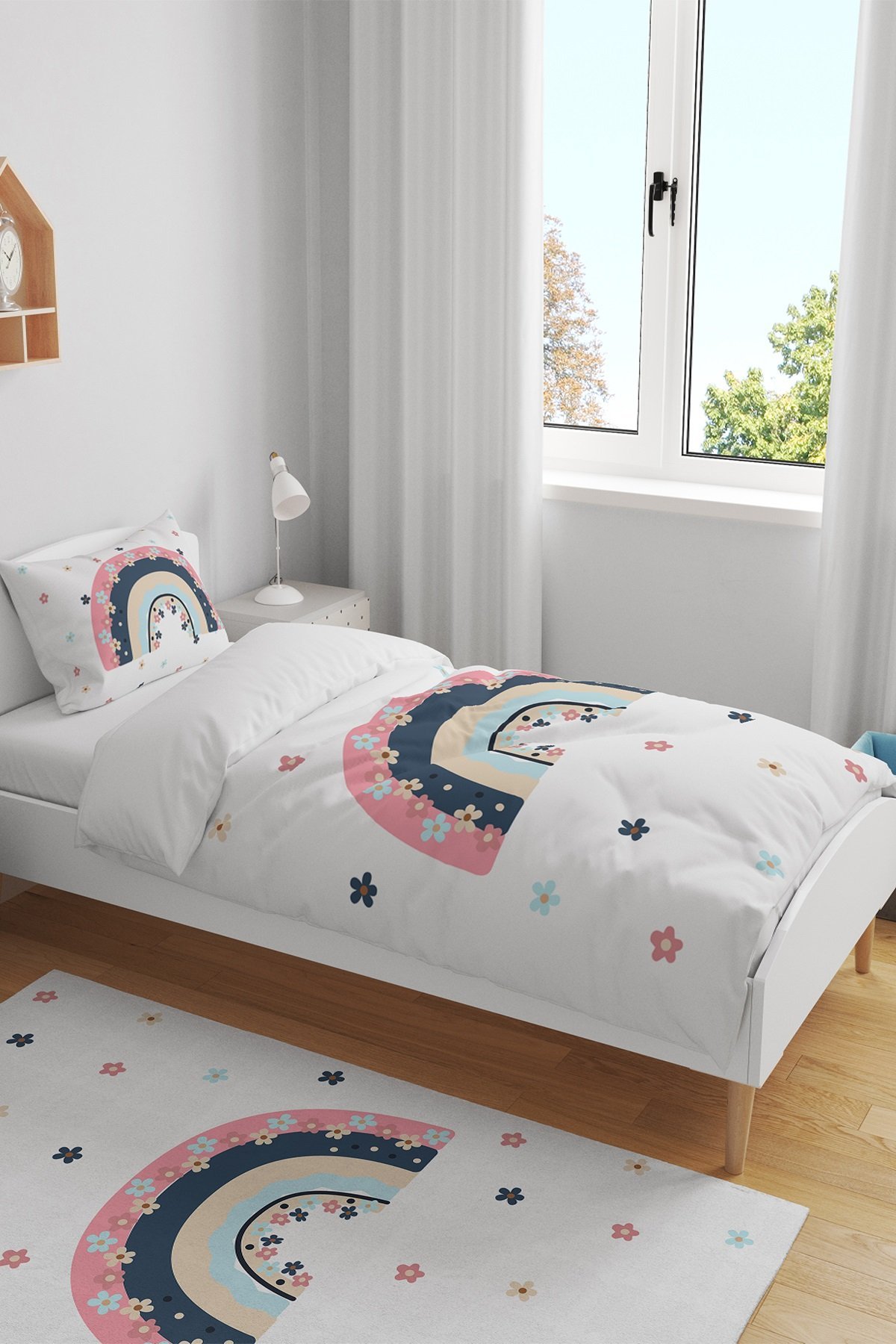 Papatyalı Gökkuşağı Desenli Tek Kişilik Bebek Çocuk Nevresim Seti
