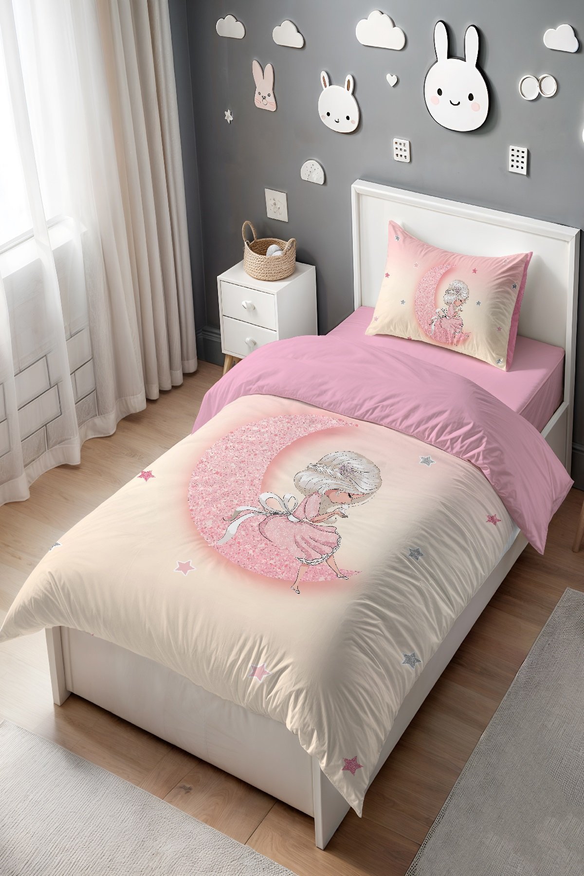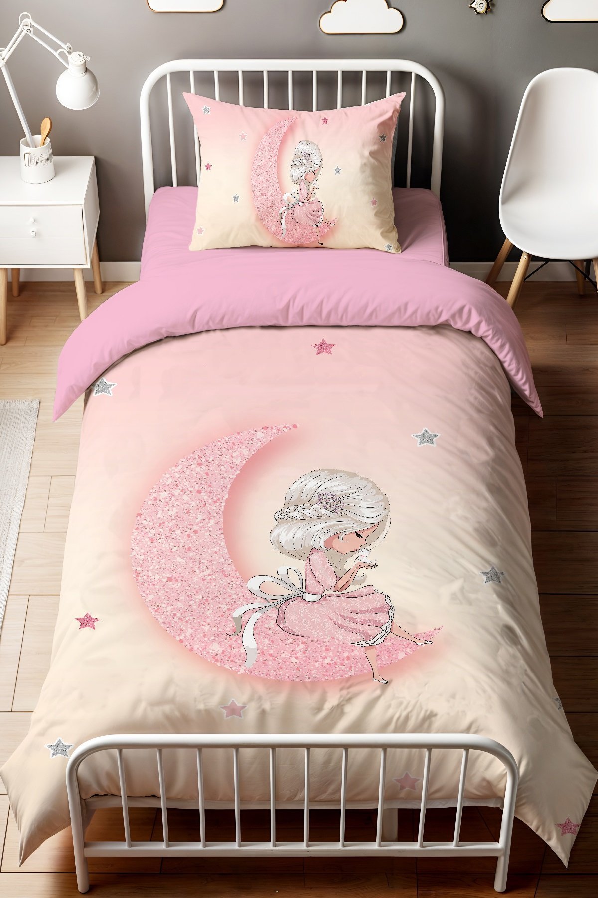 Parıldayan Aydaki Prenses Desenli Tek Kişilik Bebek Çocuk Nevresim Seti