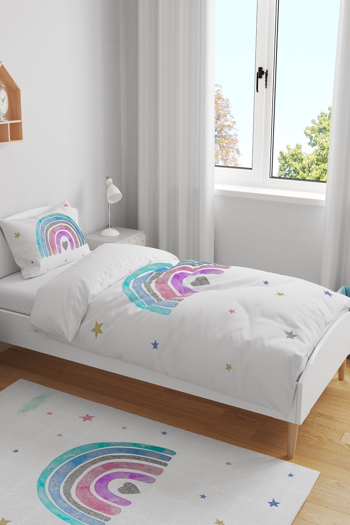 Parıldayan Gökkuşağı Desenli Tek Kişilik Bebek Çocuk Nevresim Takımı