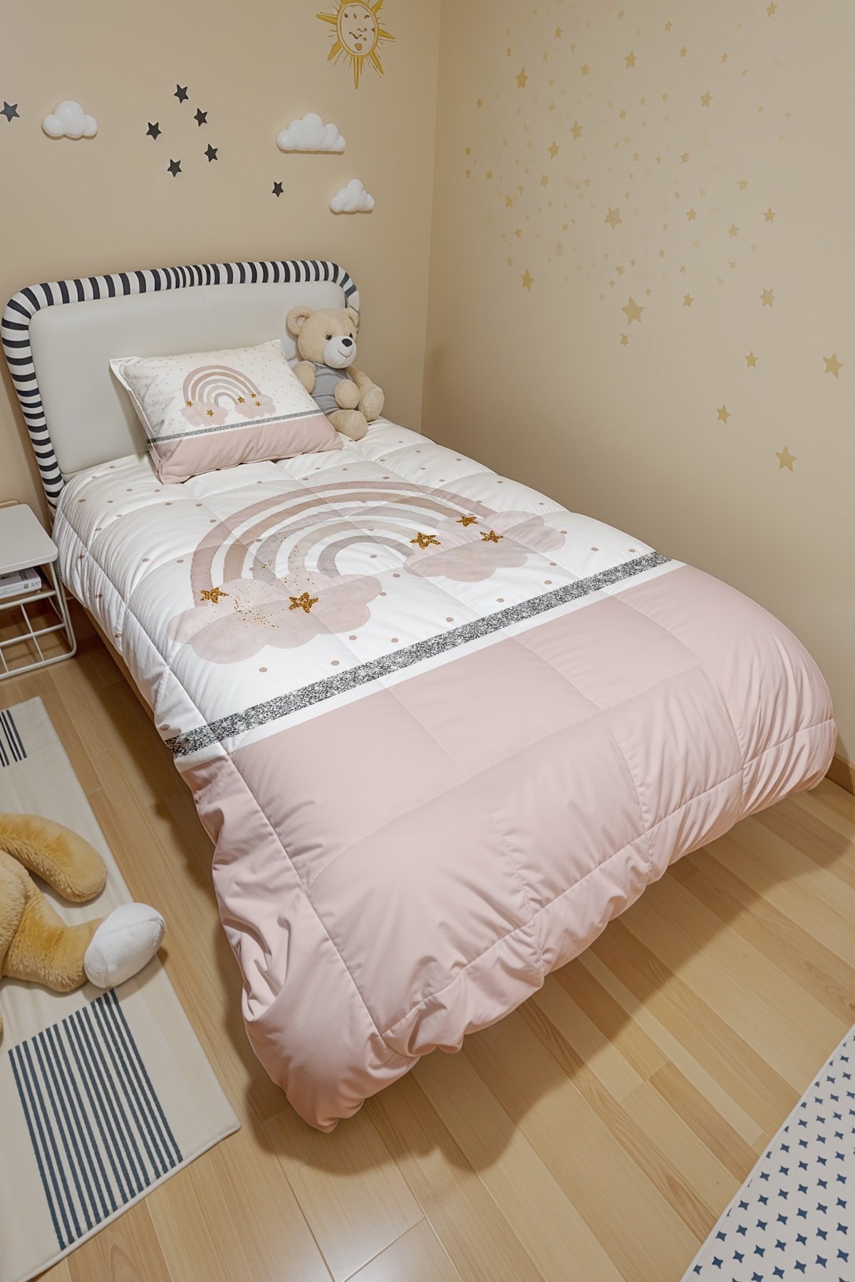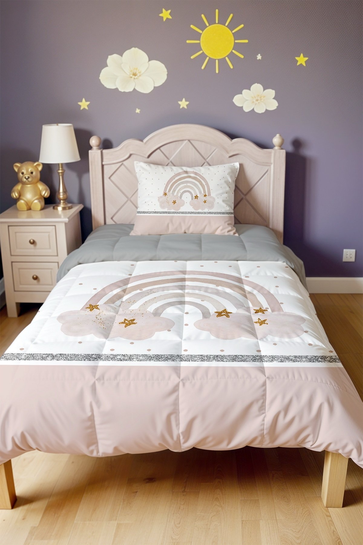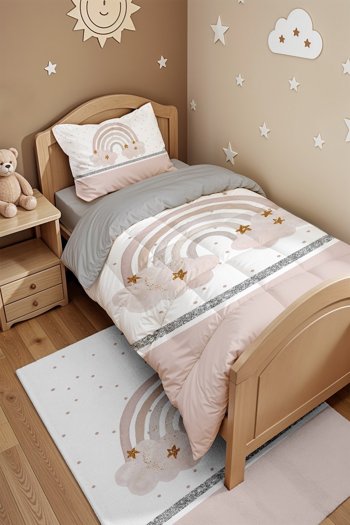 Parıldayan Gökkuşağı Desenli Tek Kişilik Yorgan ve Yastık Kılıfı