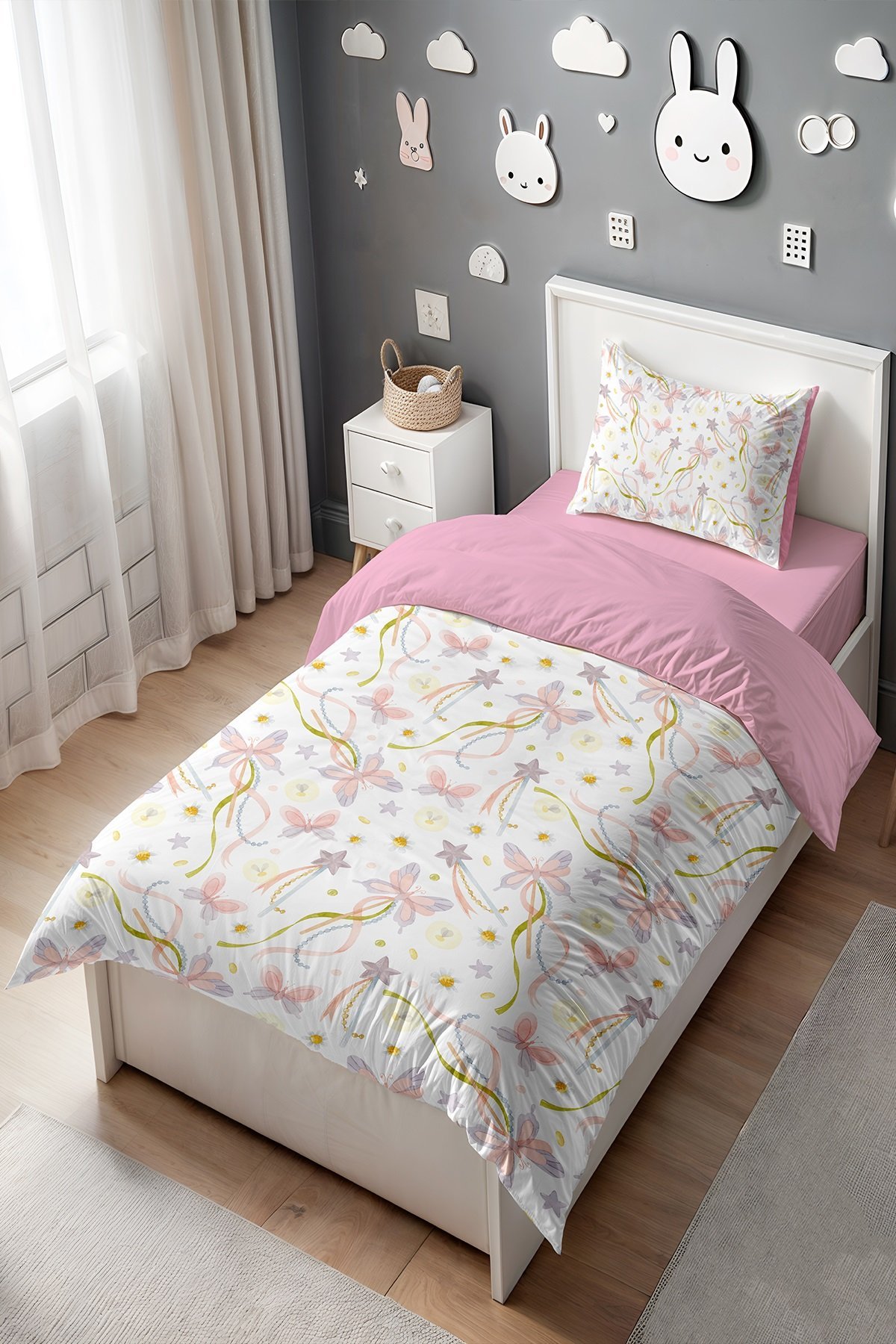 Pastel Kelebekler Desenli Tek Kişilik Bebek Çocuk Nevresim Seti