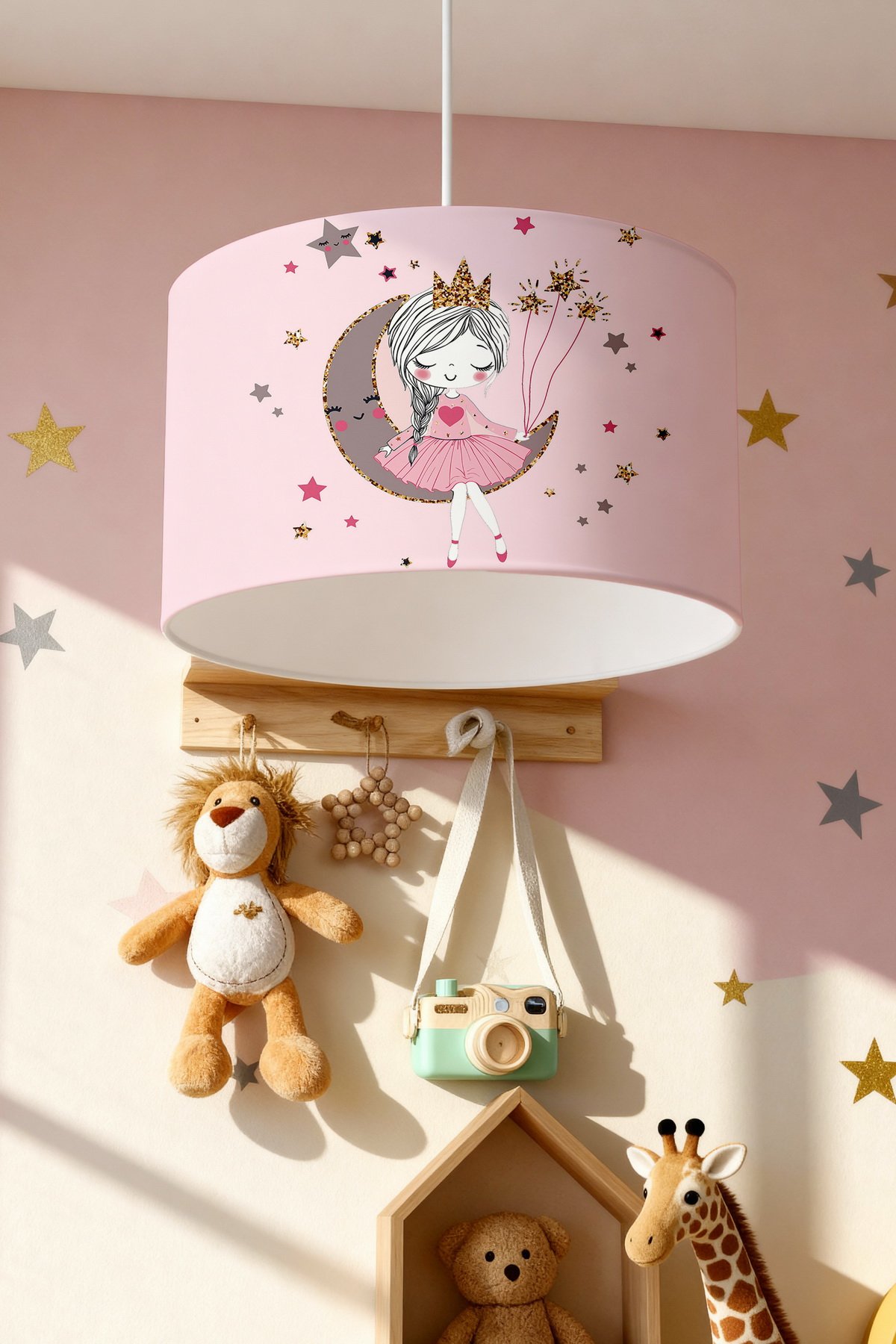 Pembe Ay Üstündeki Prenses Desenli Çocuk Odası Avize