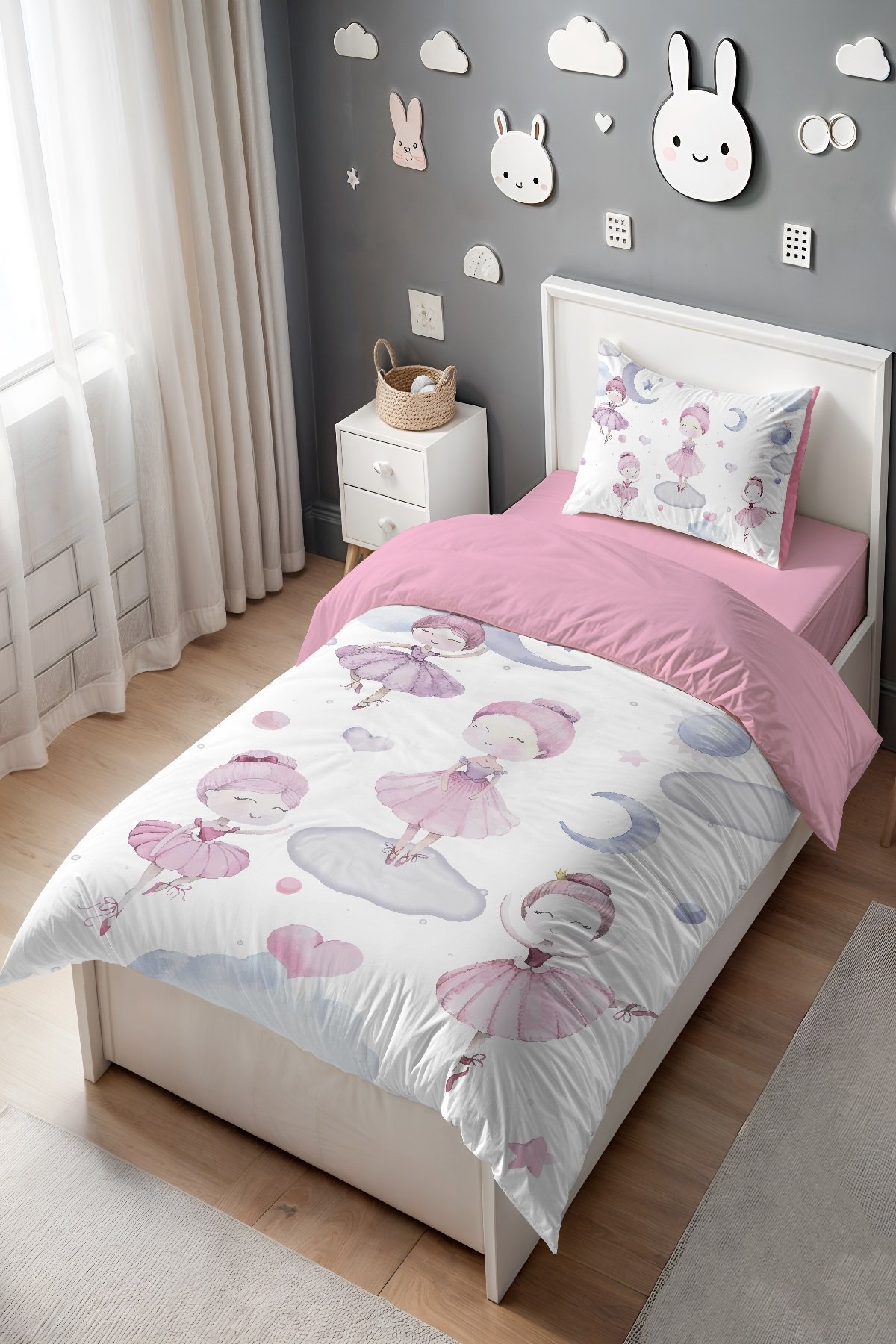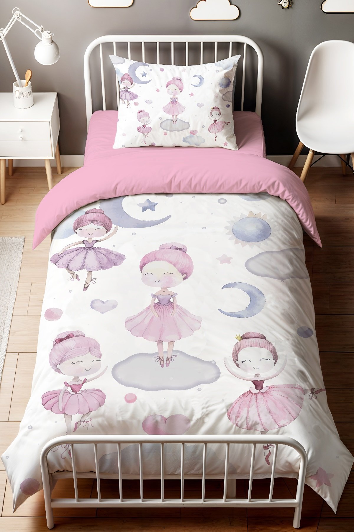 Pembe Balerinler Desenli Tek Kişilik Bebek Çocuk Nevresim Seti
