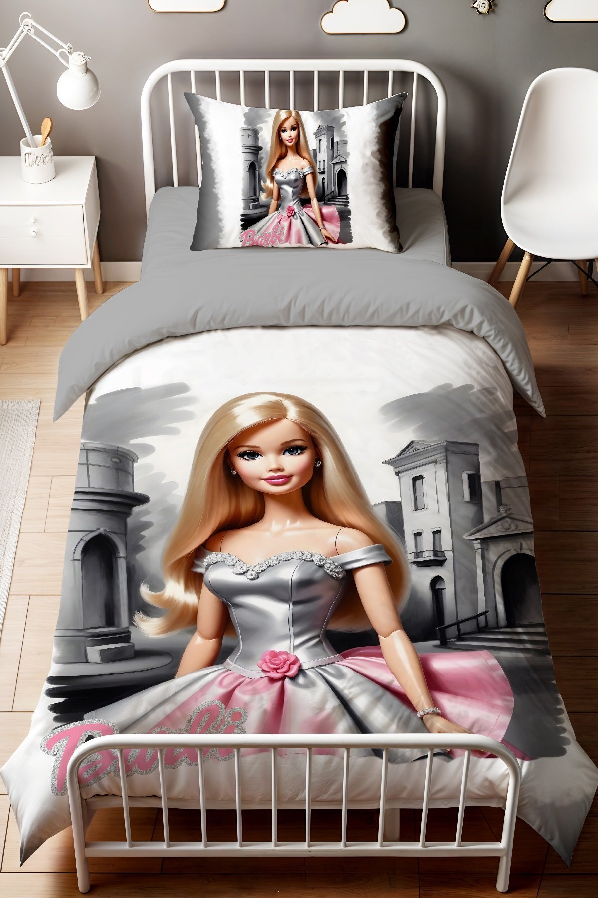 Pembe Etekli Barbi Desenli Tek Kişilik Bebek Çocuk Nevresim Seti