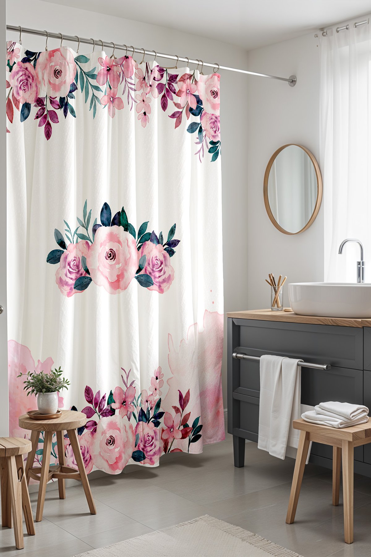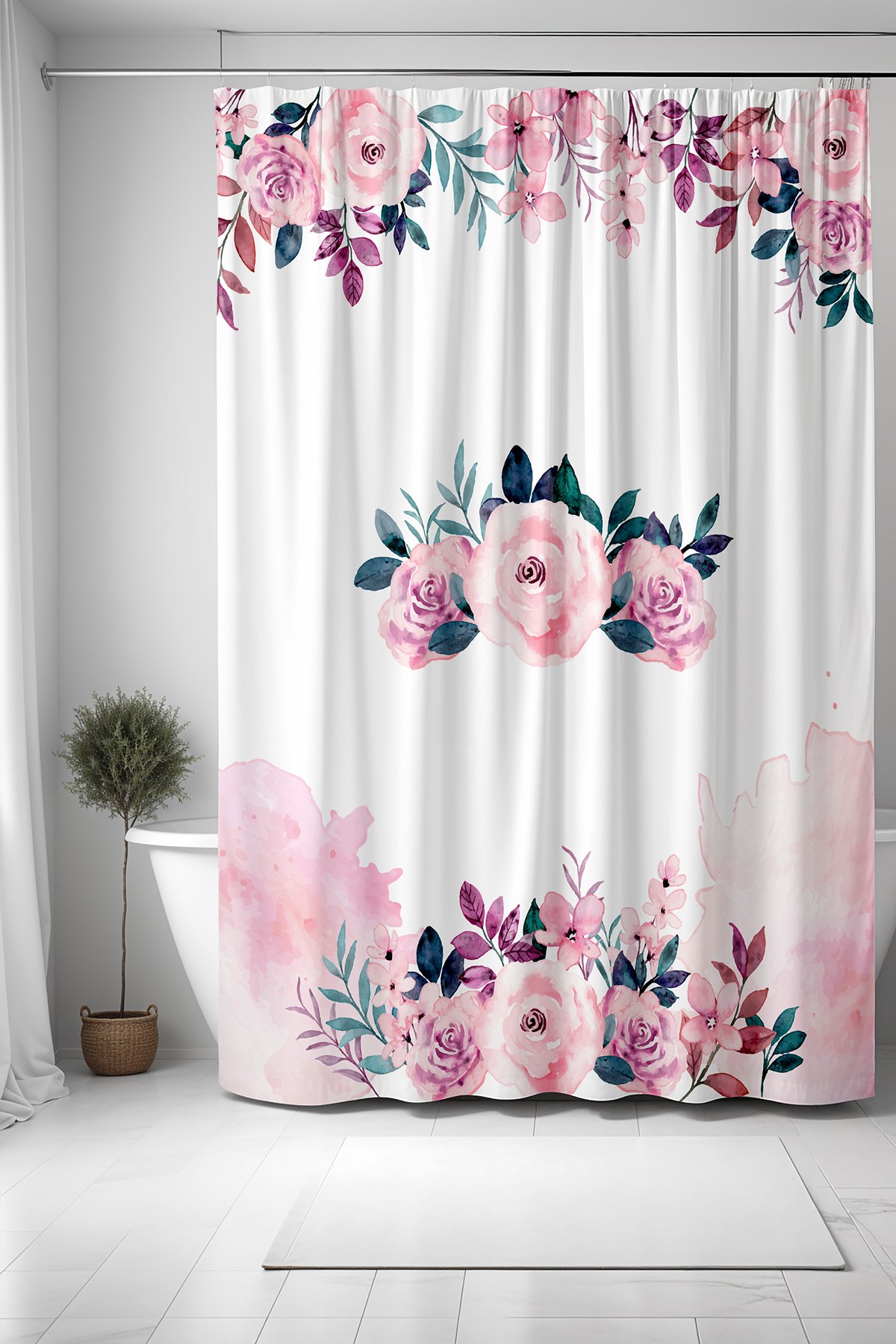 Pembe Güller Desenli Duş Perdesi Küvet Perdesi 175x200cm