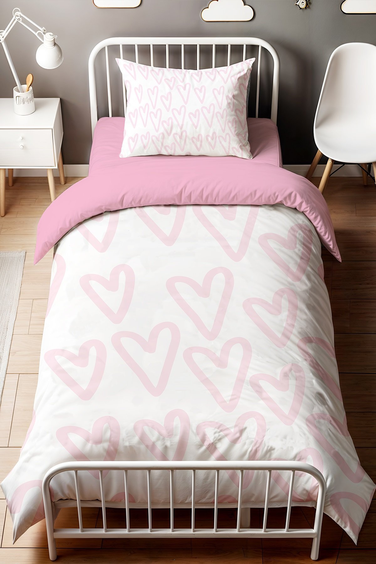 Pembe Hayal Kalpler Desenli Tek Kişilik Bebek Çocuk Nevresim Seti