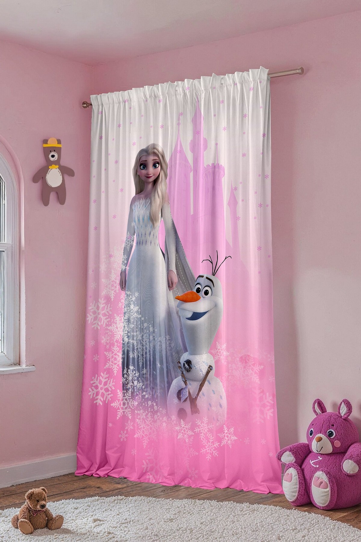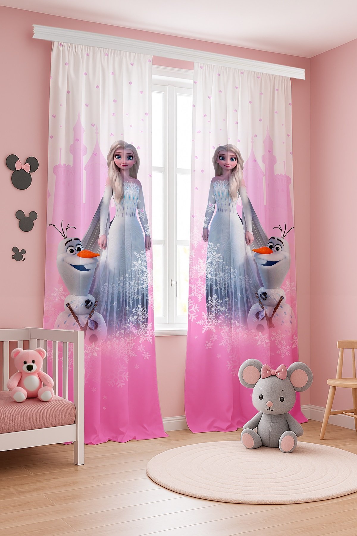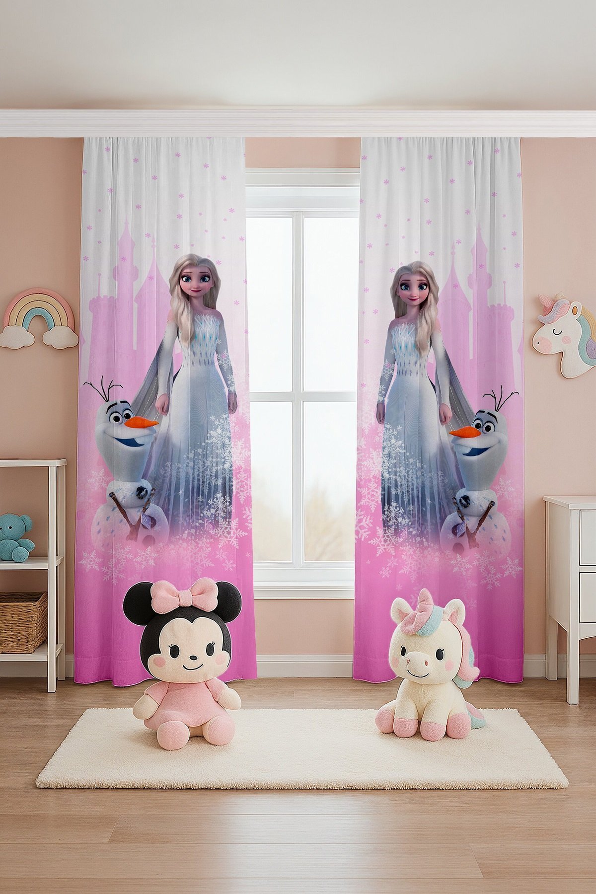 Pembe Rüya Kalesi Elsa Desenli Çocuk Bebek Odası Fon Perde (Tek Kanat Fiyatlandırma)