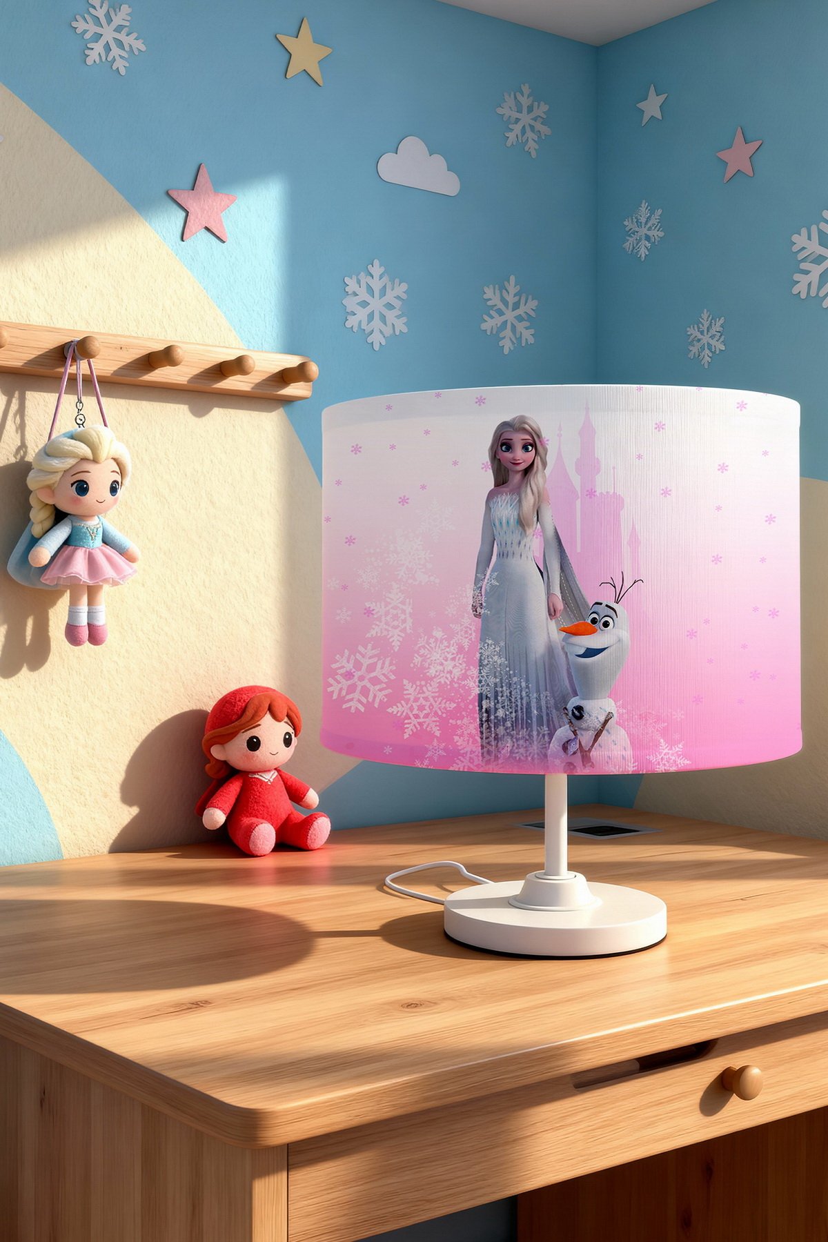 Pembe Rüya Kalesi Elsa Desenli Çocuk Odası Abajur