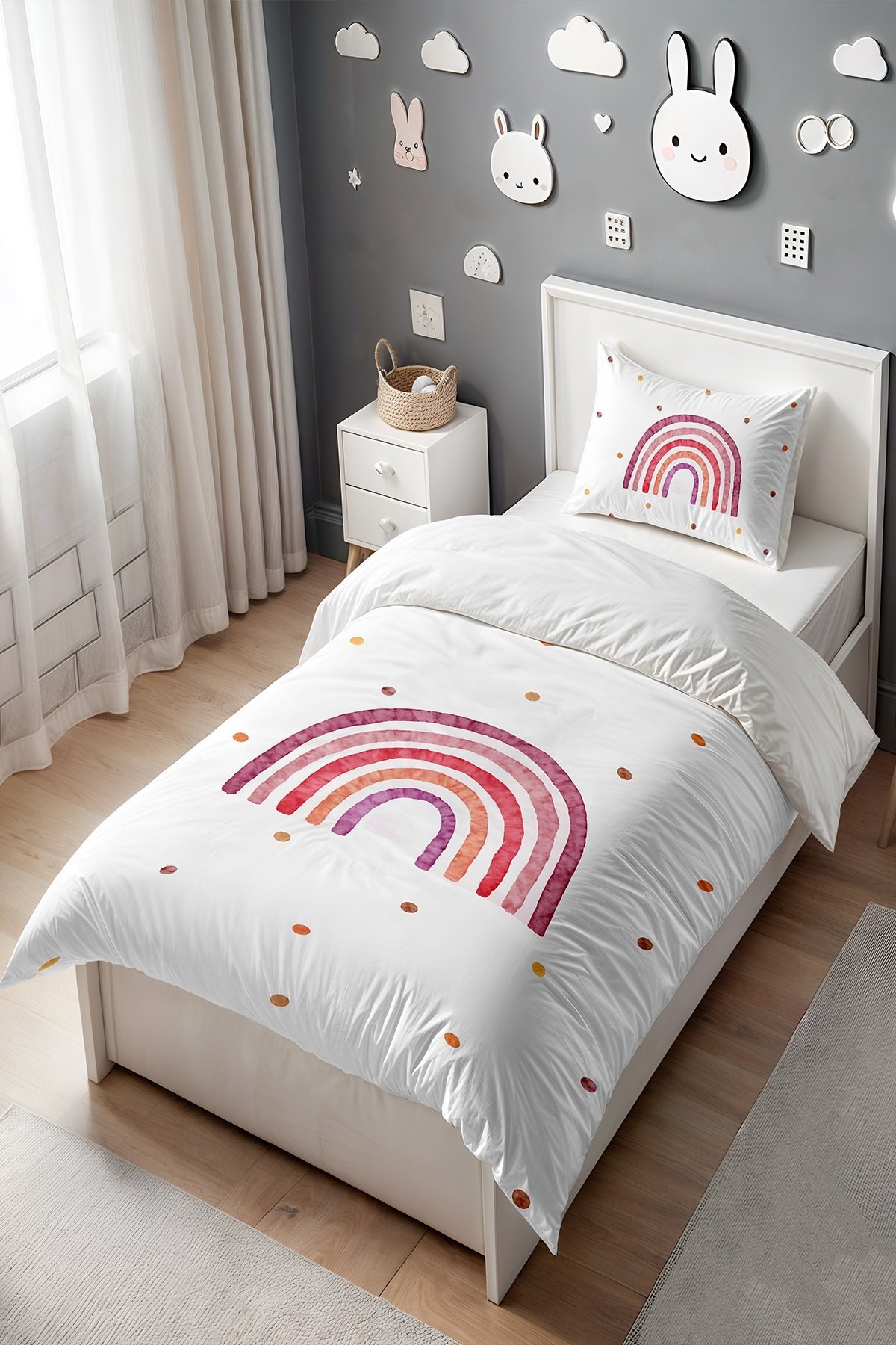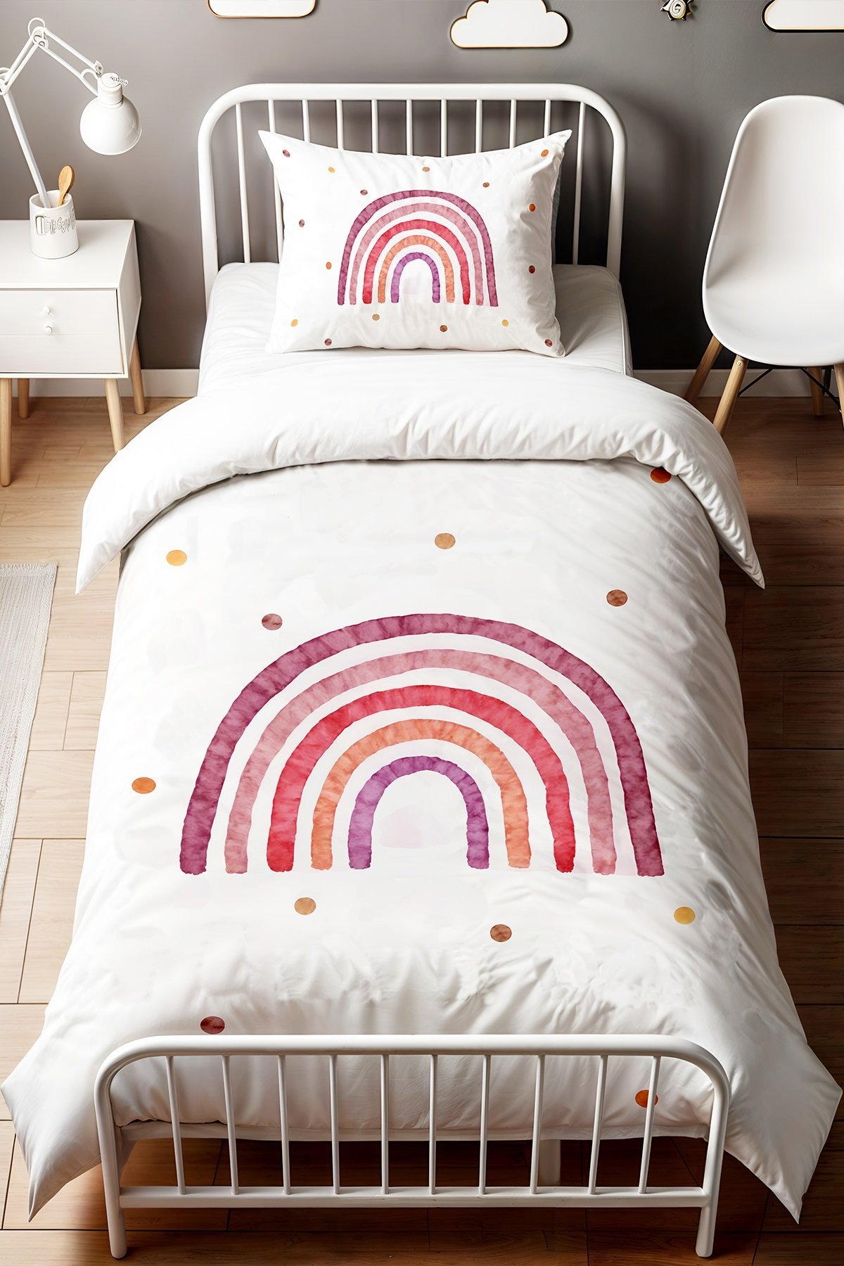 Pembeli Gökkuşağı Desenli Tek Kişilik Bebek Çocuk Nevresim Seti
