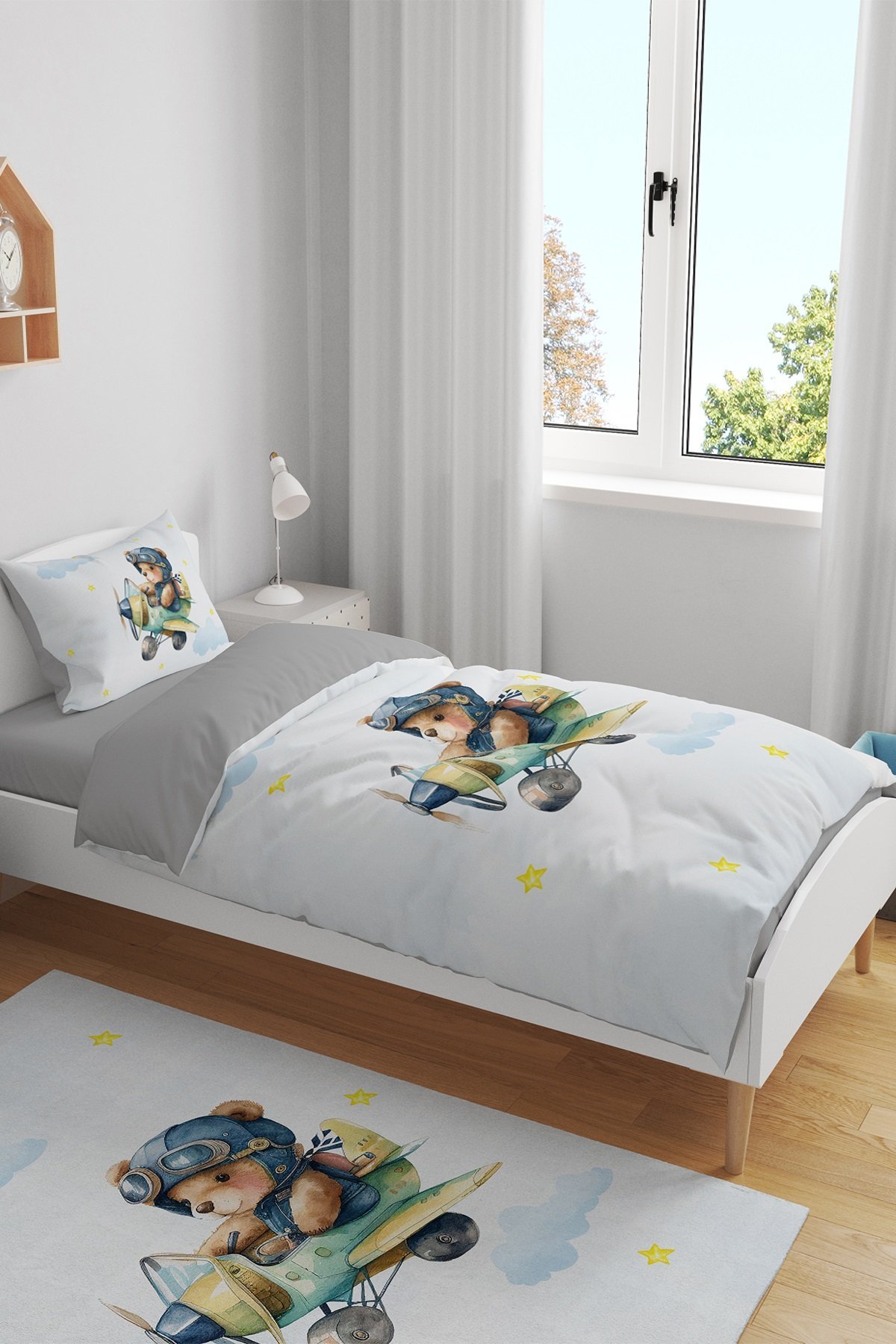 Pilot Ayıcık Desenli Tek Kişilik Bebek Çocuk Nevresim Seti