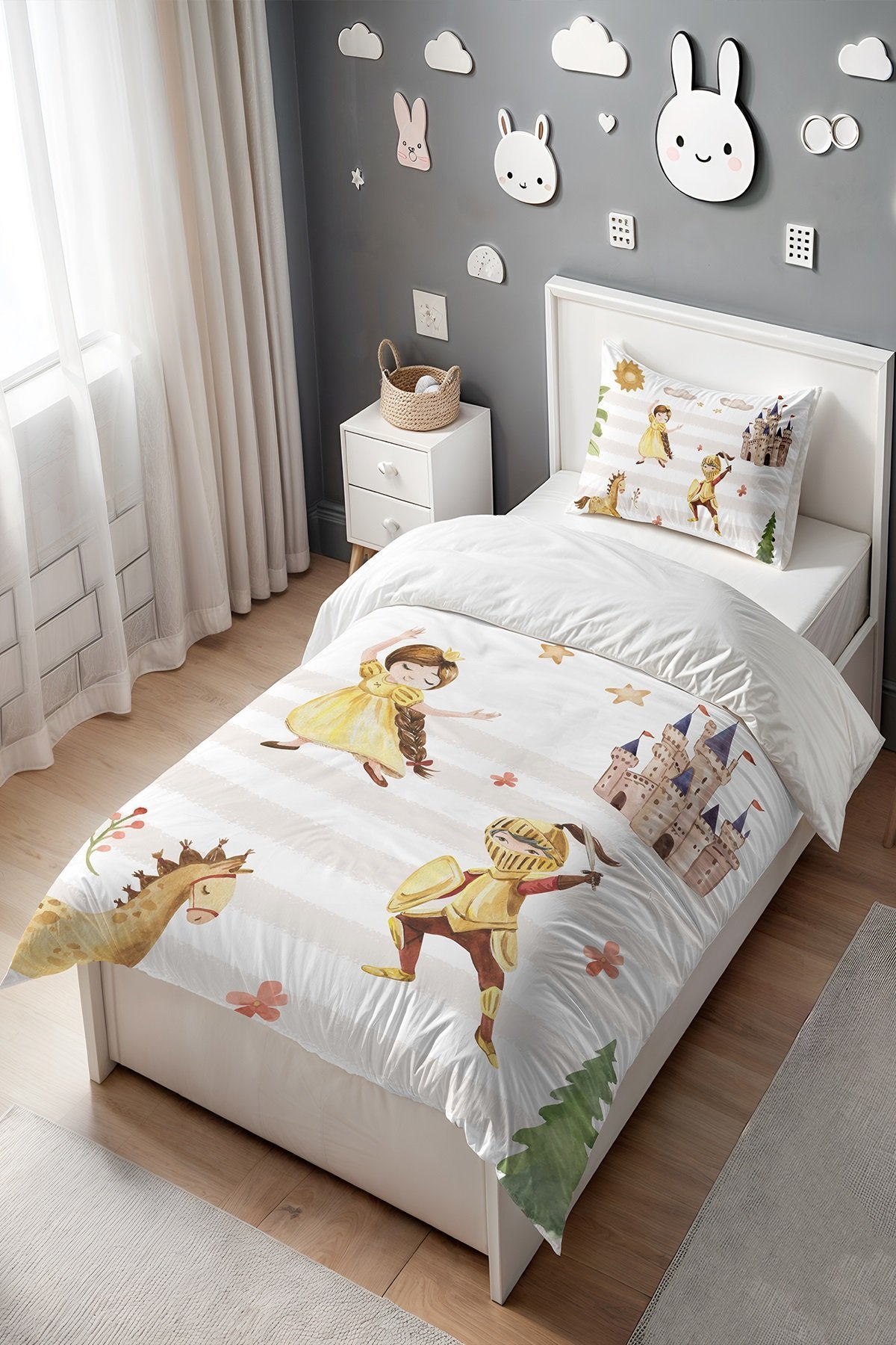 Prensesi Kurtaran Şövalye Desenli Tek Kişilik Bebek Çocuk Nevresim Seti