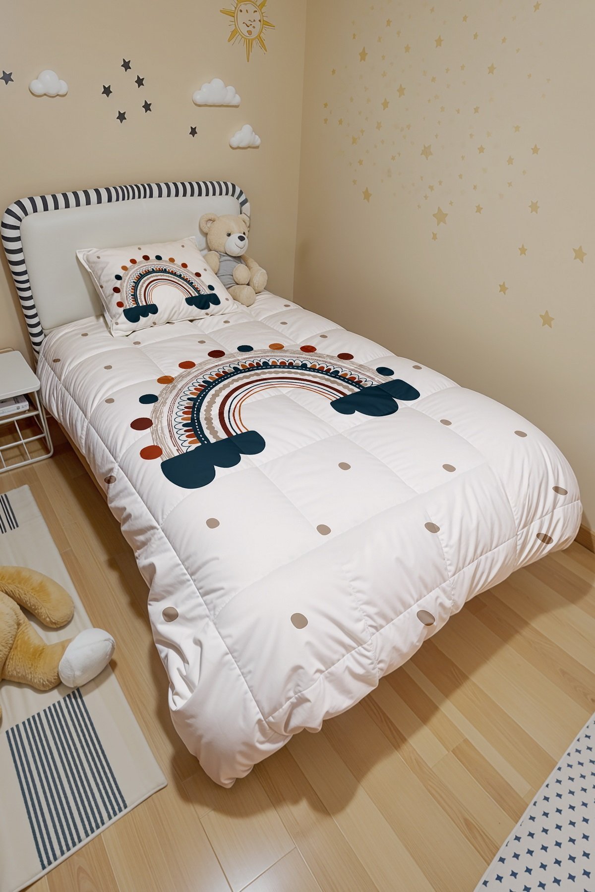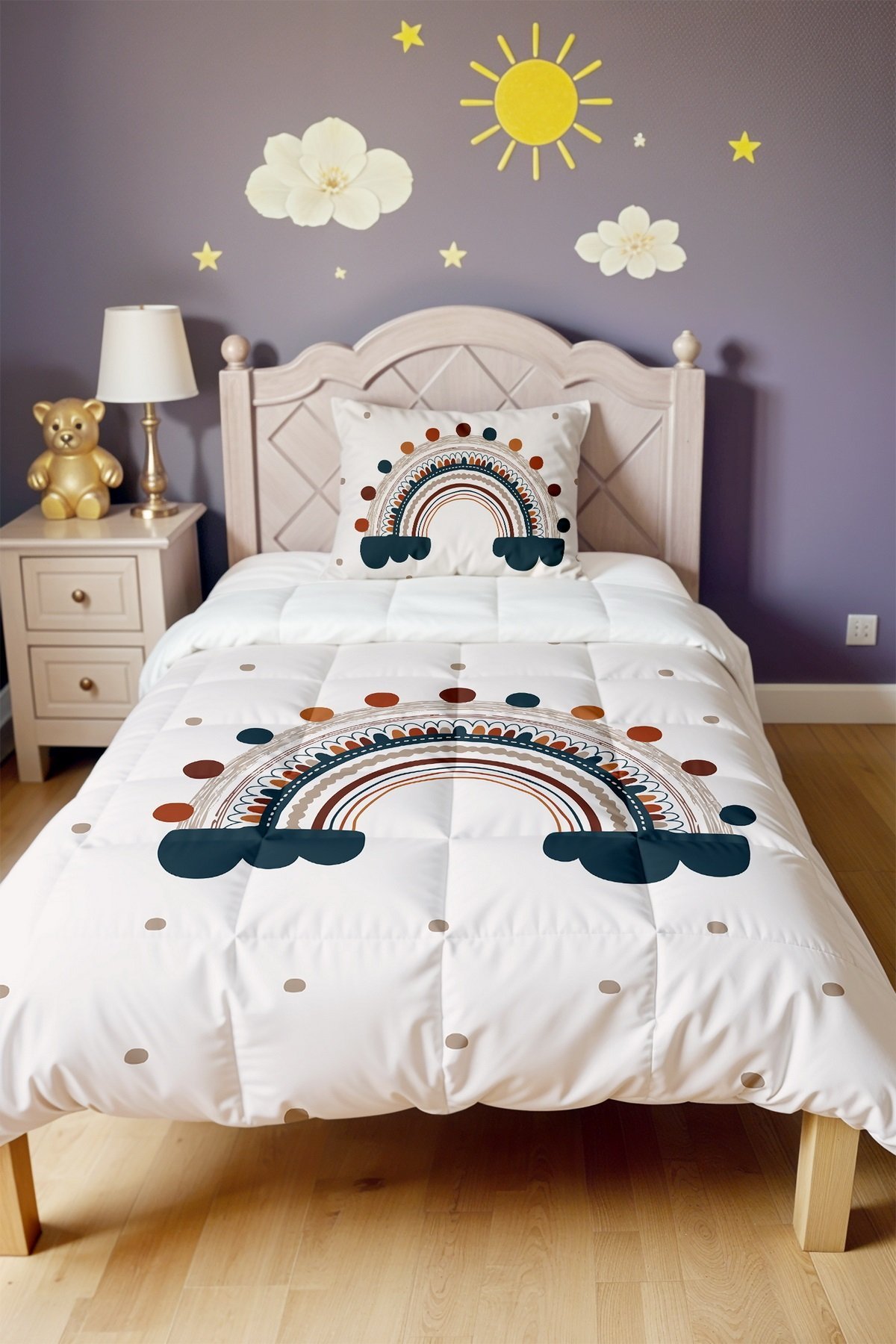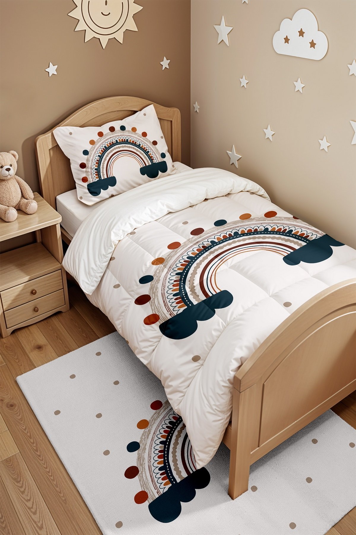 Puantiyeli Gökkuşağı Desenli Tek Kişilik Yorgan ve Yastık Kılıfı