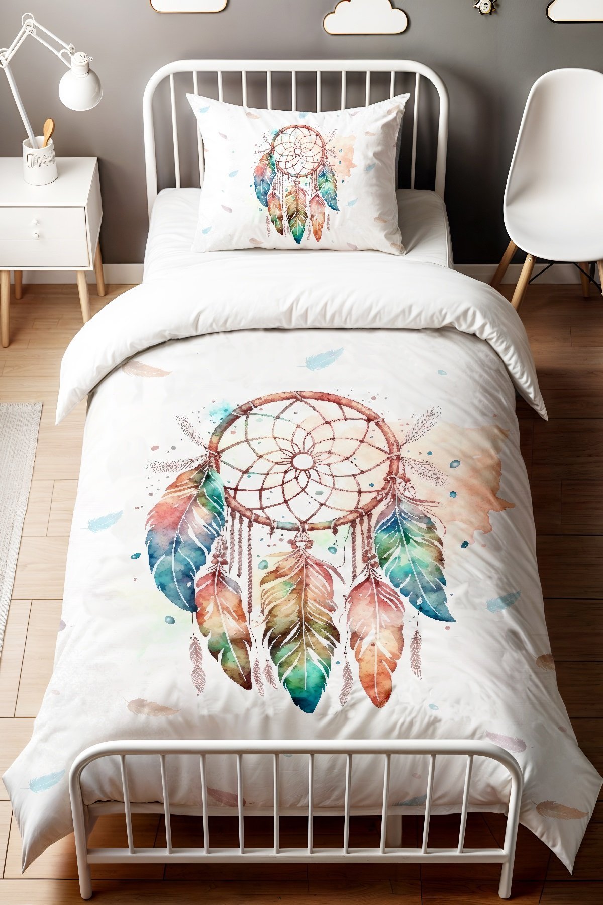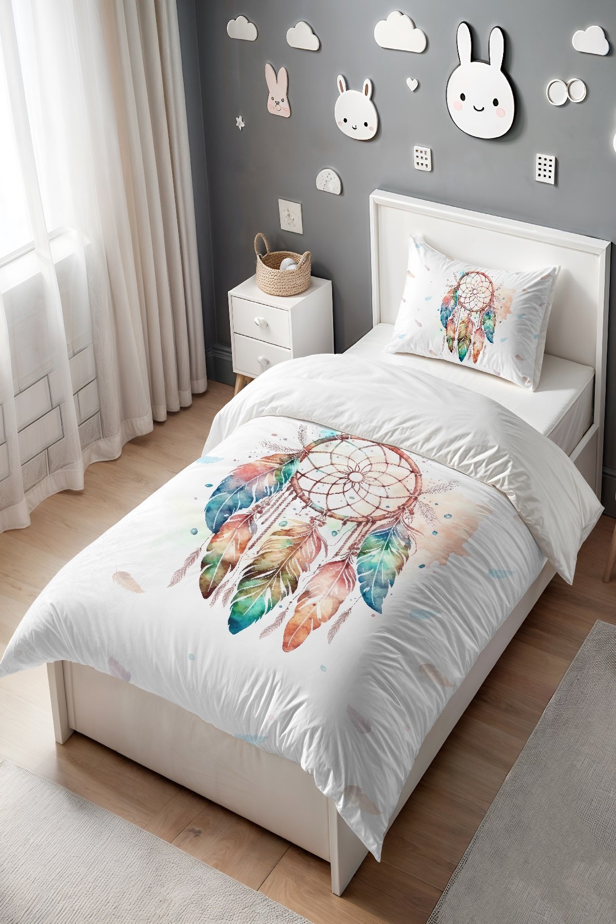 Renkli Düşkapanı Desenli Tek Kişilik Bebek Çocuk Nevresim Seti