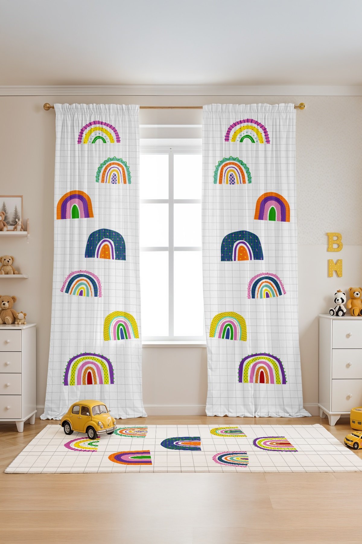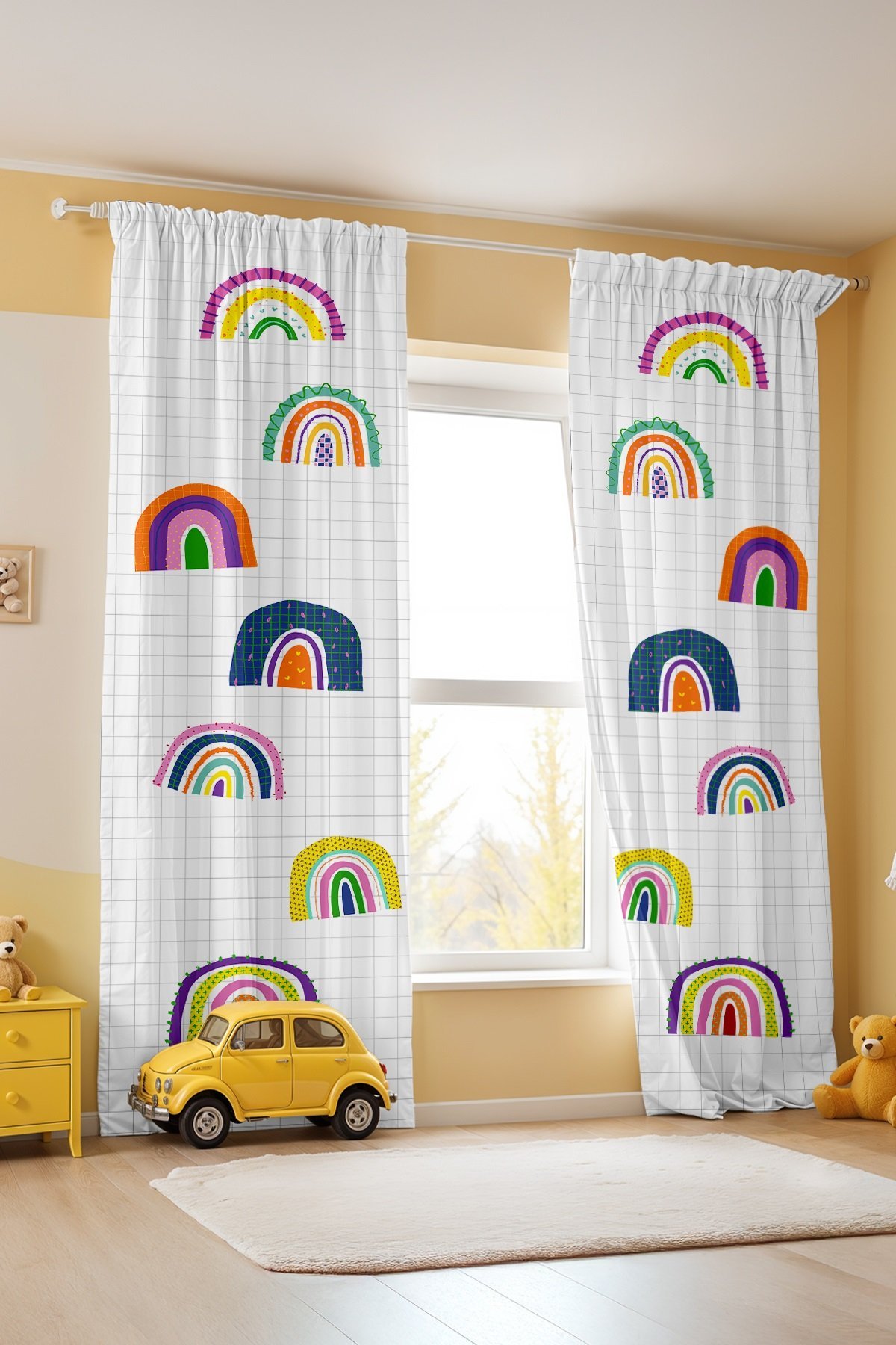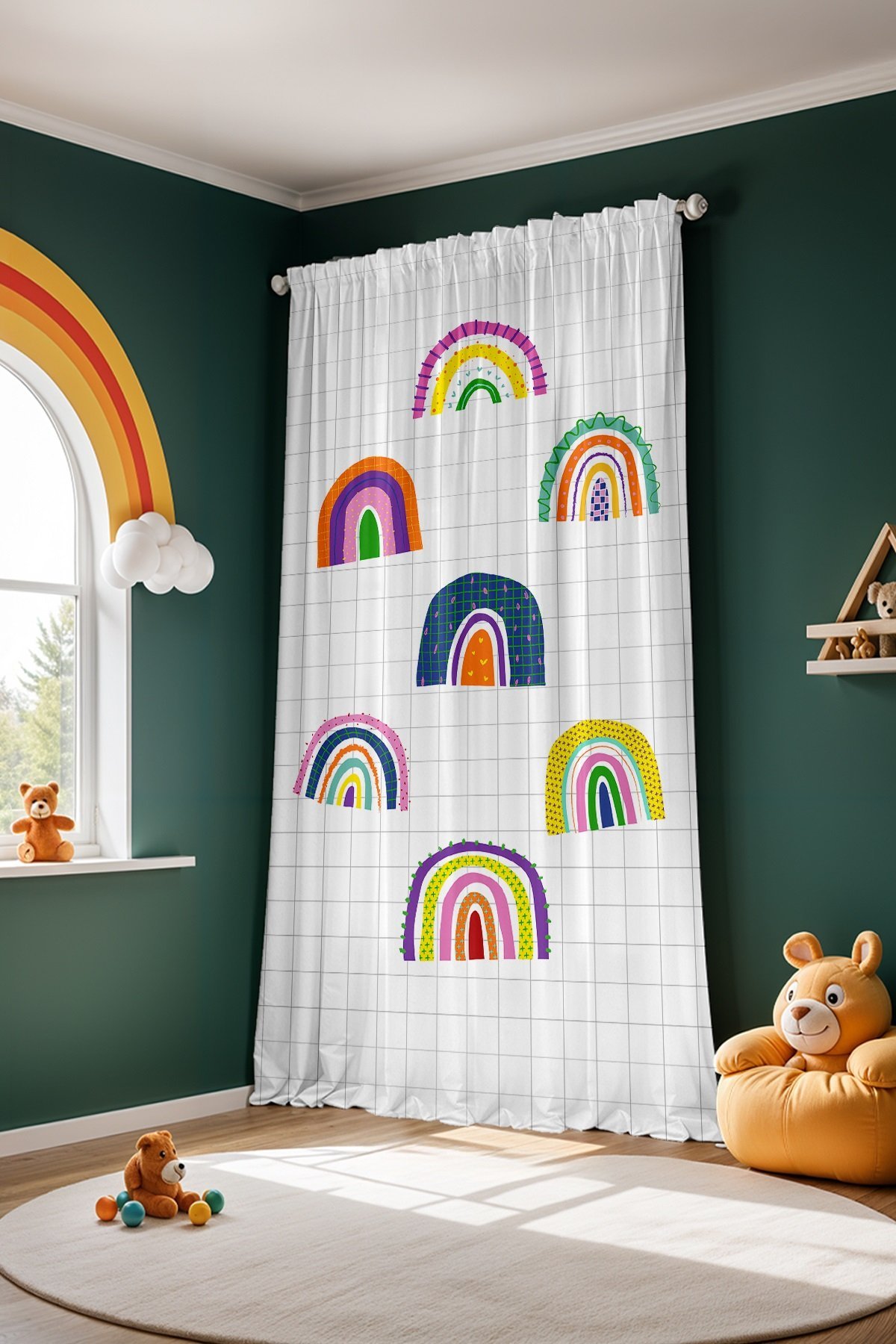 Renkli Gökkuşakları Desenli Çocuk Bebek Odası Fon Perde (Tek Kanat Fiyatlandırma)