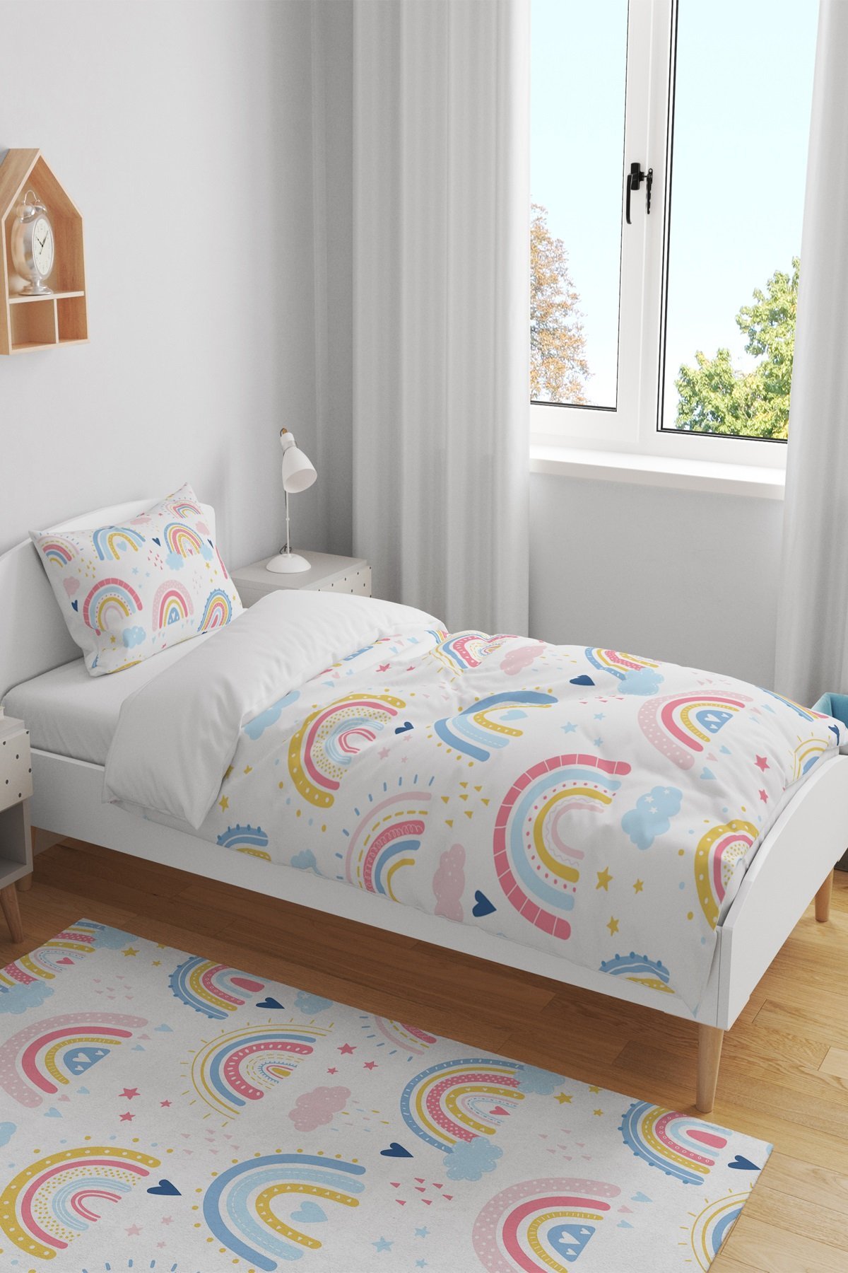 Renkli Gökkuşakları Desenli Tek Kişilik Bebek Çocuk Nevresim Takımı