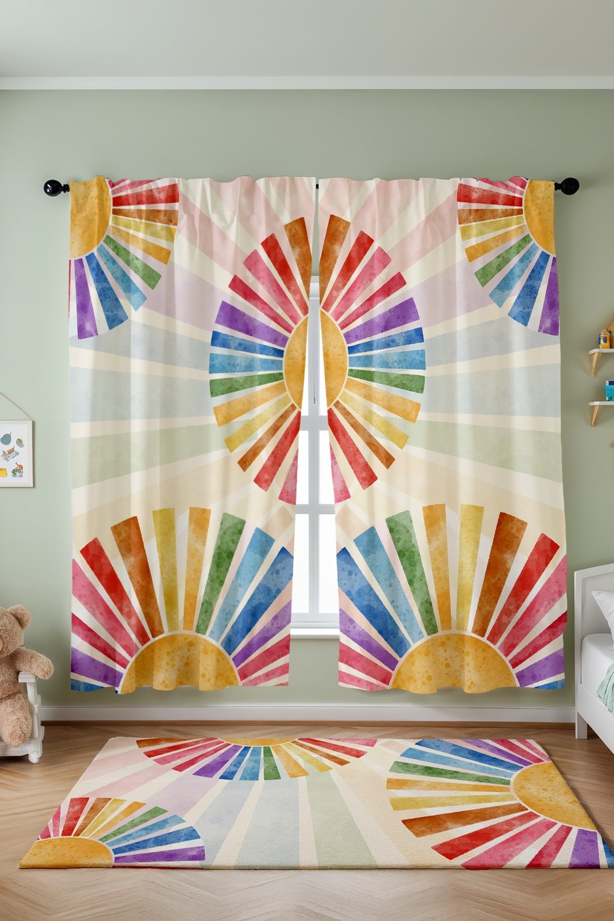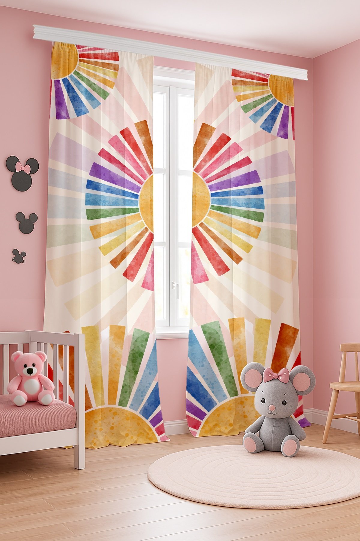Renkli Güneşler Desenli Çocuk Bebek Odası Fon Perde (Tek Kanat Fiyatlandırma)