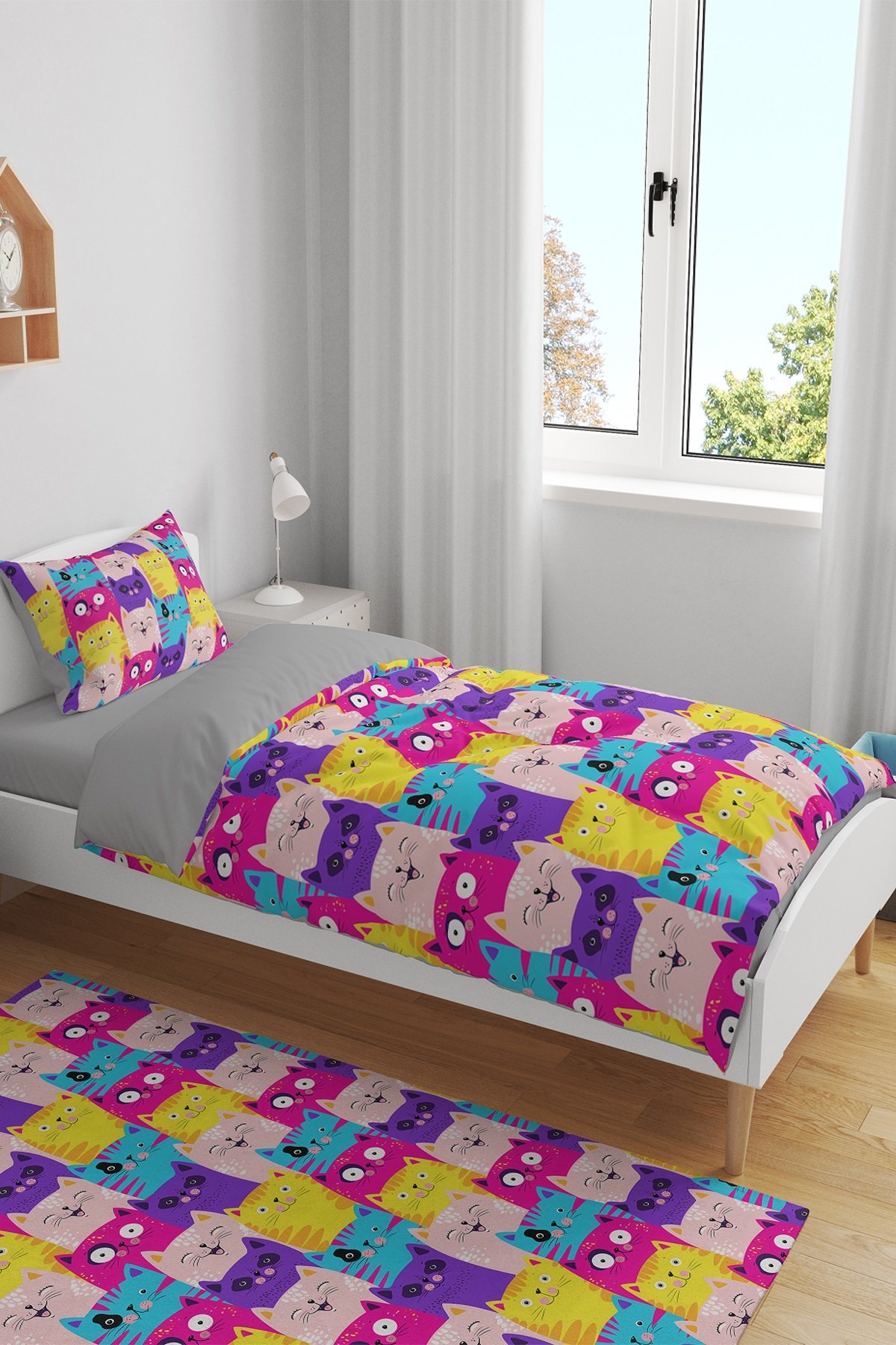 Renkli Kediler Desenli Tek Kişilik Bebek Çocuk Nevresim Seti