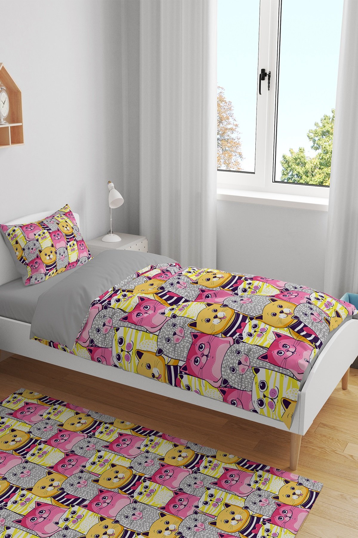 Renkli Kediler Desenli Tek Kişilik Bebek Çocuk Nevresim Seti