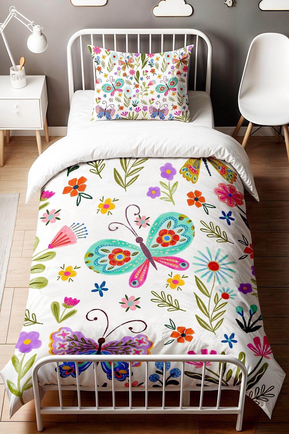 Renkli Kelebek Ormanı Desenli Tek Kişilik Bebek Çocuk Nevresim Seti