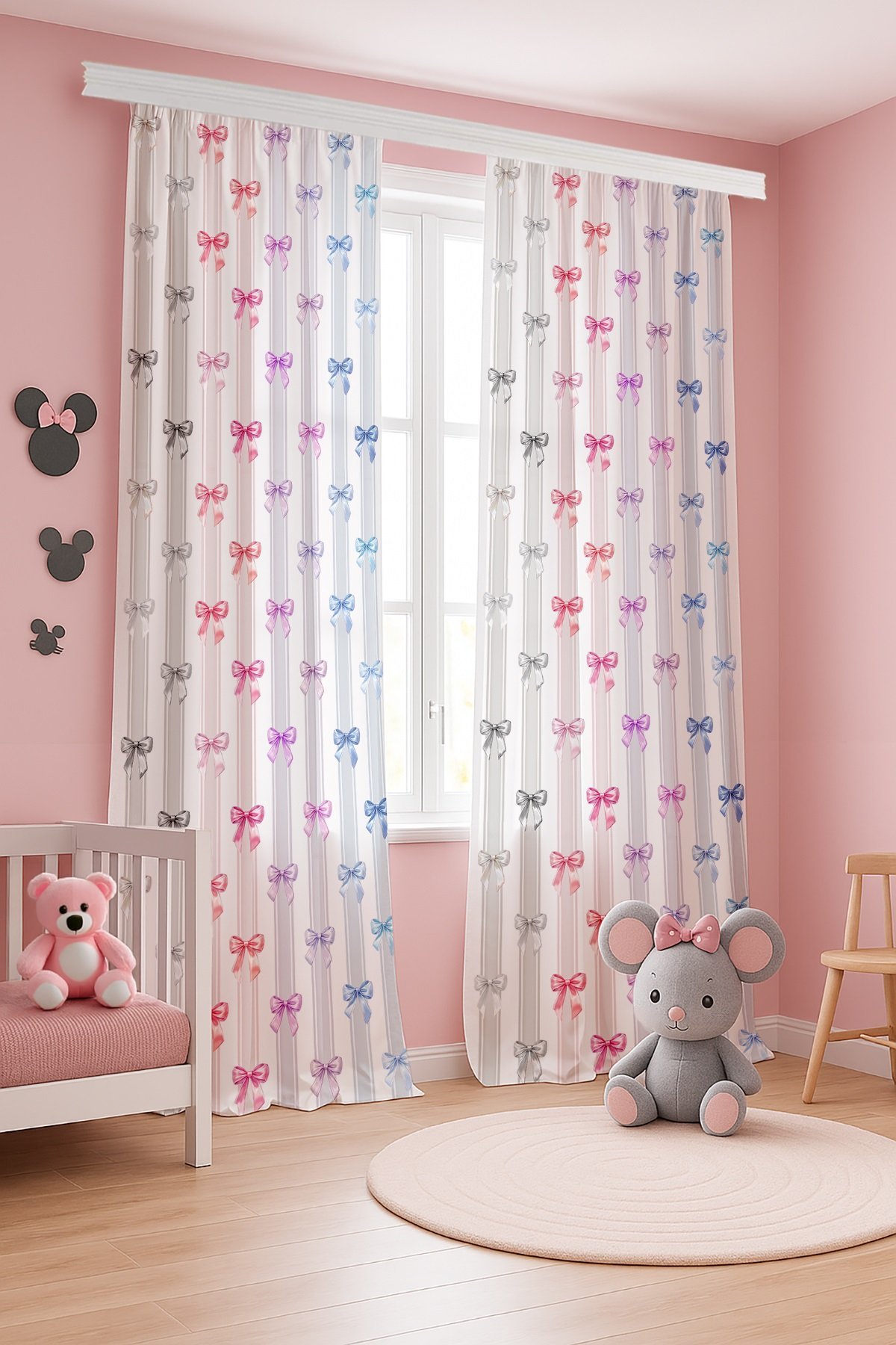 Renkli Şeritli Fiyonklar Desenli Çocuk Bebek Odası Fon Perde (Tek Kanat Fiyatlandırma)