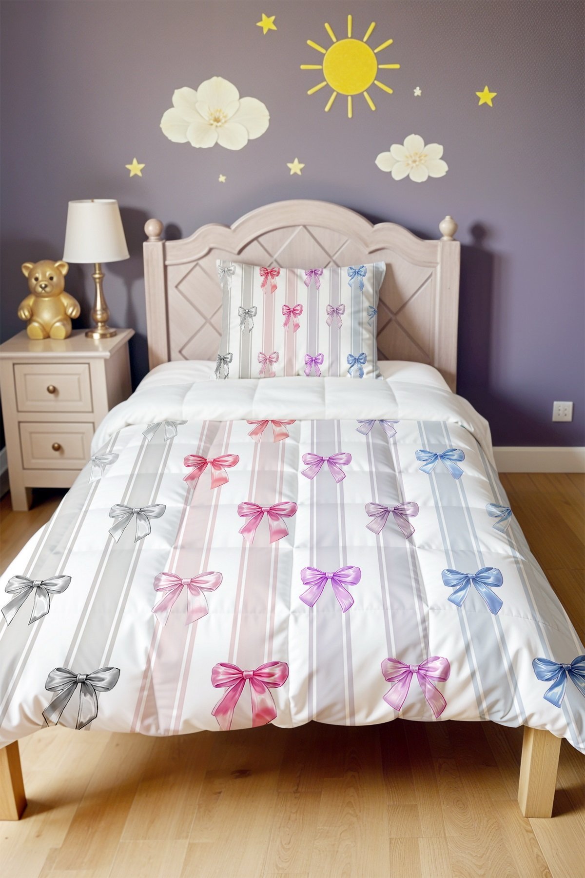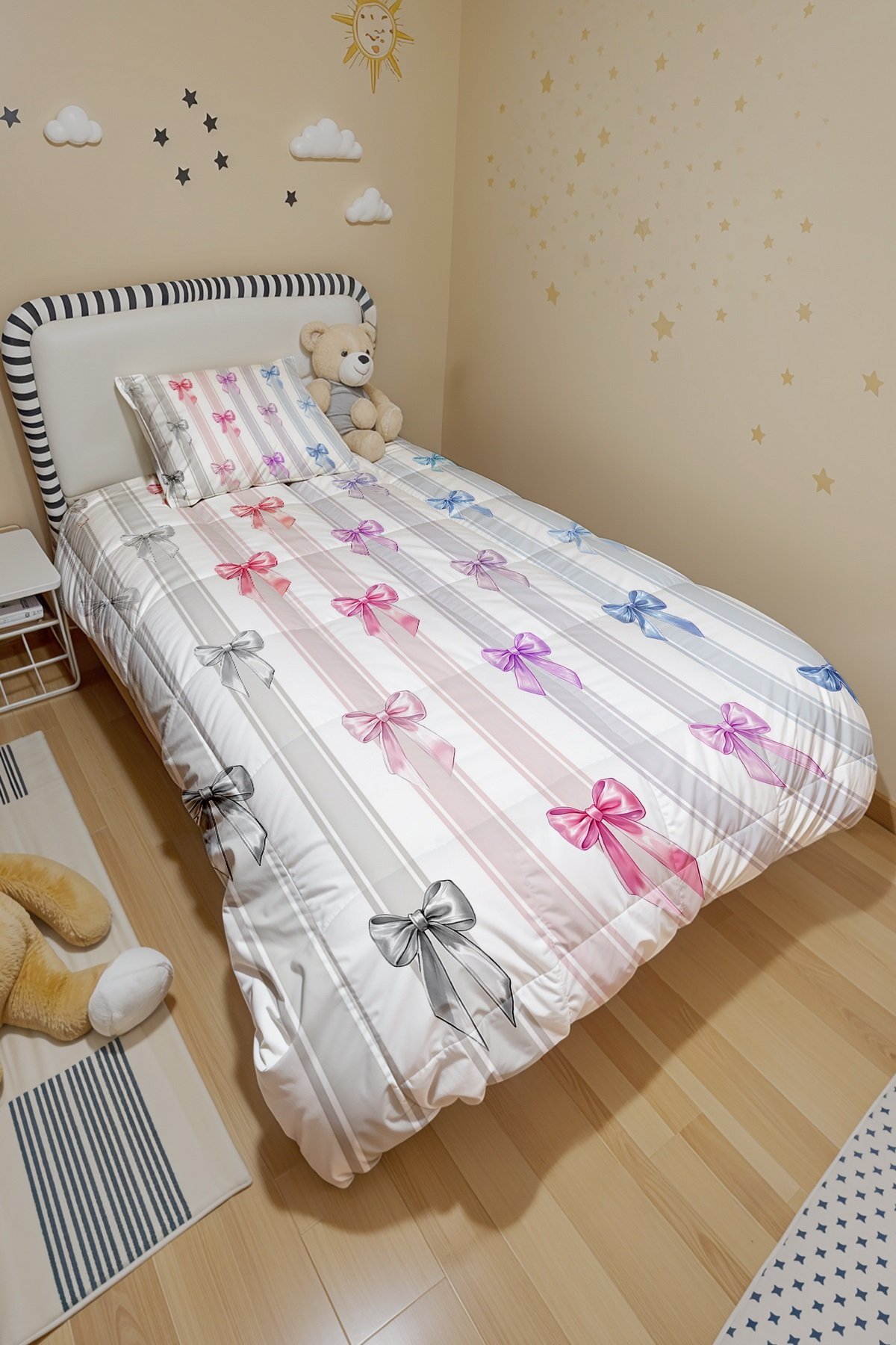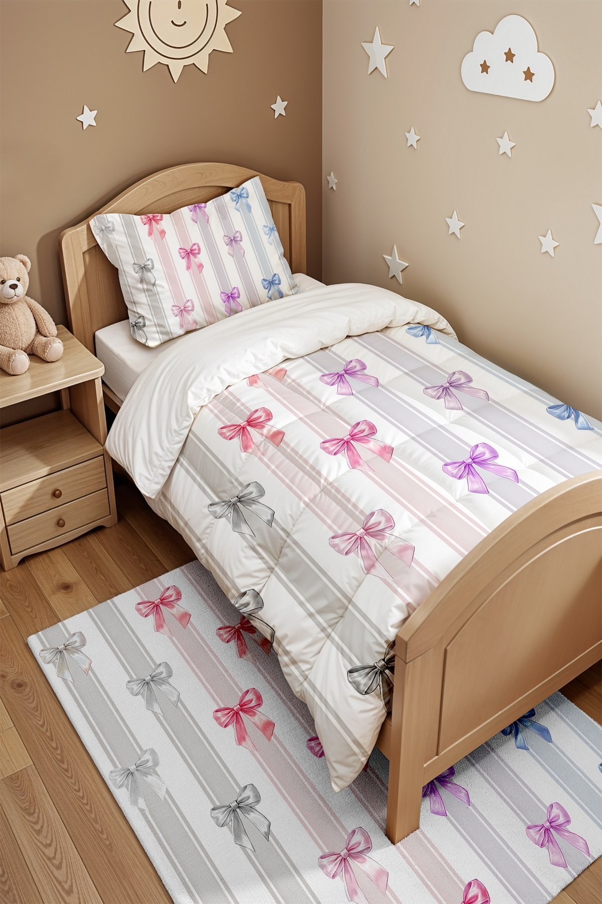 Renkli Şeritli Fiyonklar Desenli Tek Kişilik Yorgan ve Yastık Kılıfı