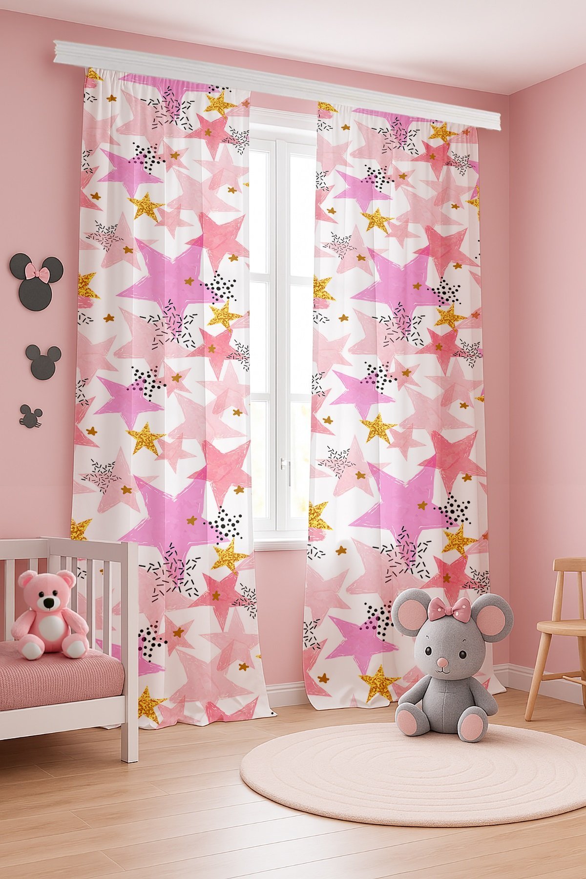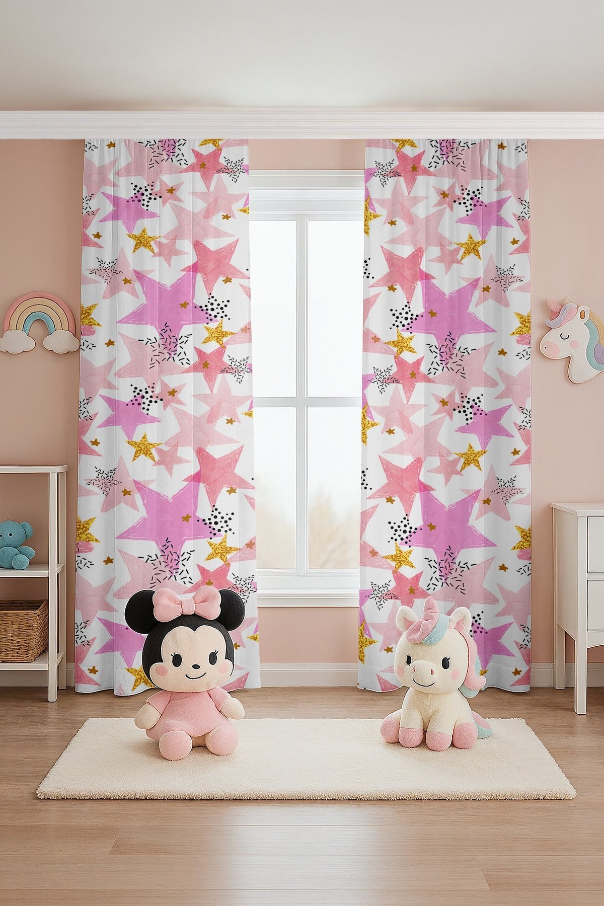 Renkli Yıldızlar Desenli Çocuk Bebek Odası Fon Perde (Tek Kanat Fiyatlandırma)