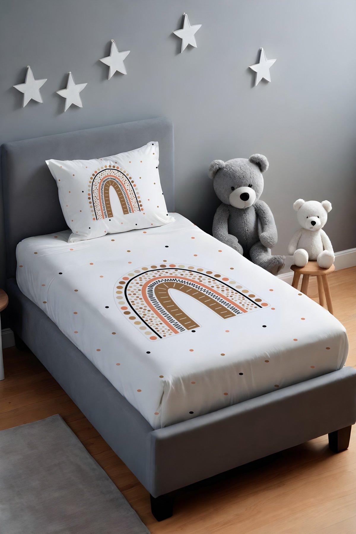 Sade Gökkuşağı Desenli Yatak Örtüsü ve Yastık Kılıfı