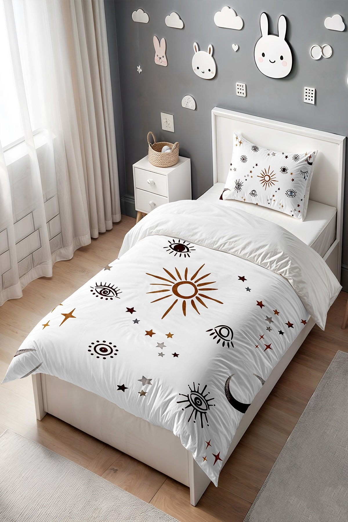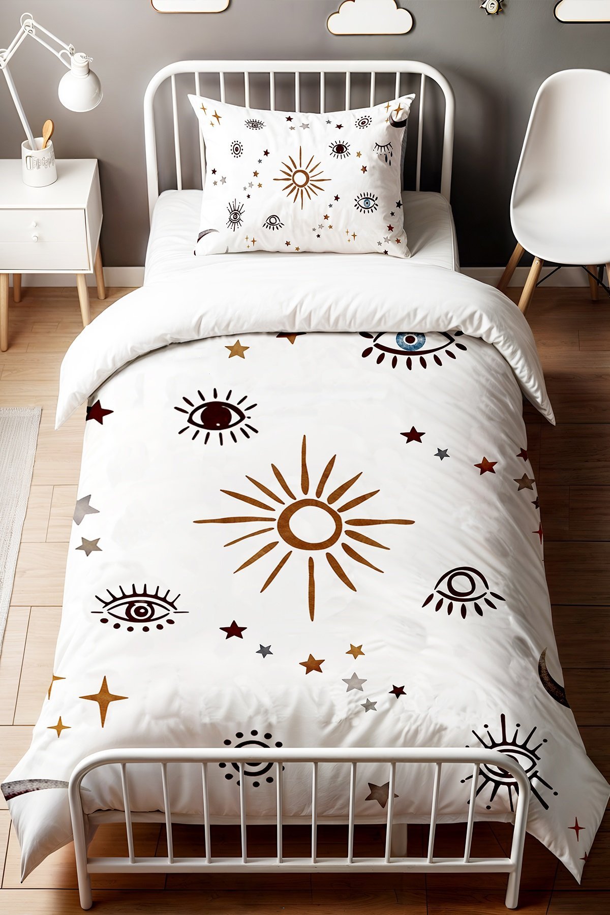 Sade Gözler Desenli Tek Kişilik Bebek Çocuk Nevresim Seti